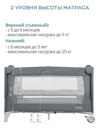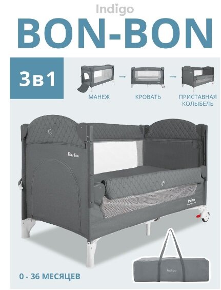 Ниже Вы можете прочитать отзывы на Манеж-кровать 3 в 1 Indigo Bon-Bon, 0-36 мес, складной, 2 уровня, светло-серый, ознакомится с подробными характеристиками, посмотреть интересные обзоры и фотографии на Манеж-кровать 3 в 1 Indigo Bon-Bon, 0-36 мес, складной, 2 уровня, светло-серый.