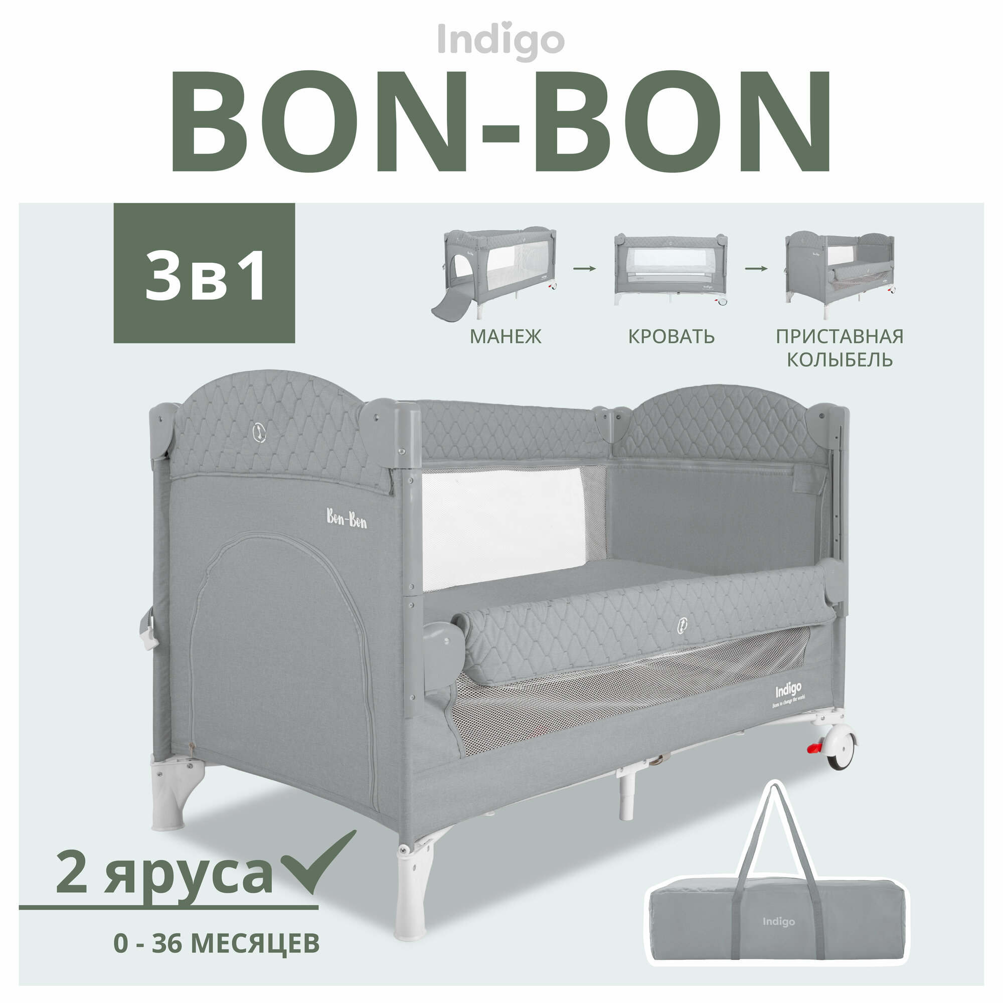 Купить Манеж-кровать 3 в 1 Indigo Bon-Bon, 0-36 мес, складной, 2 уровня, светло-серый
