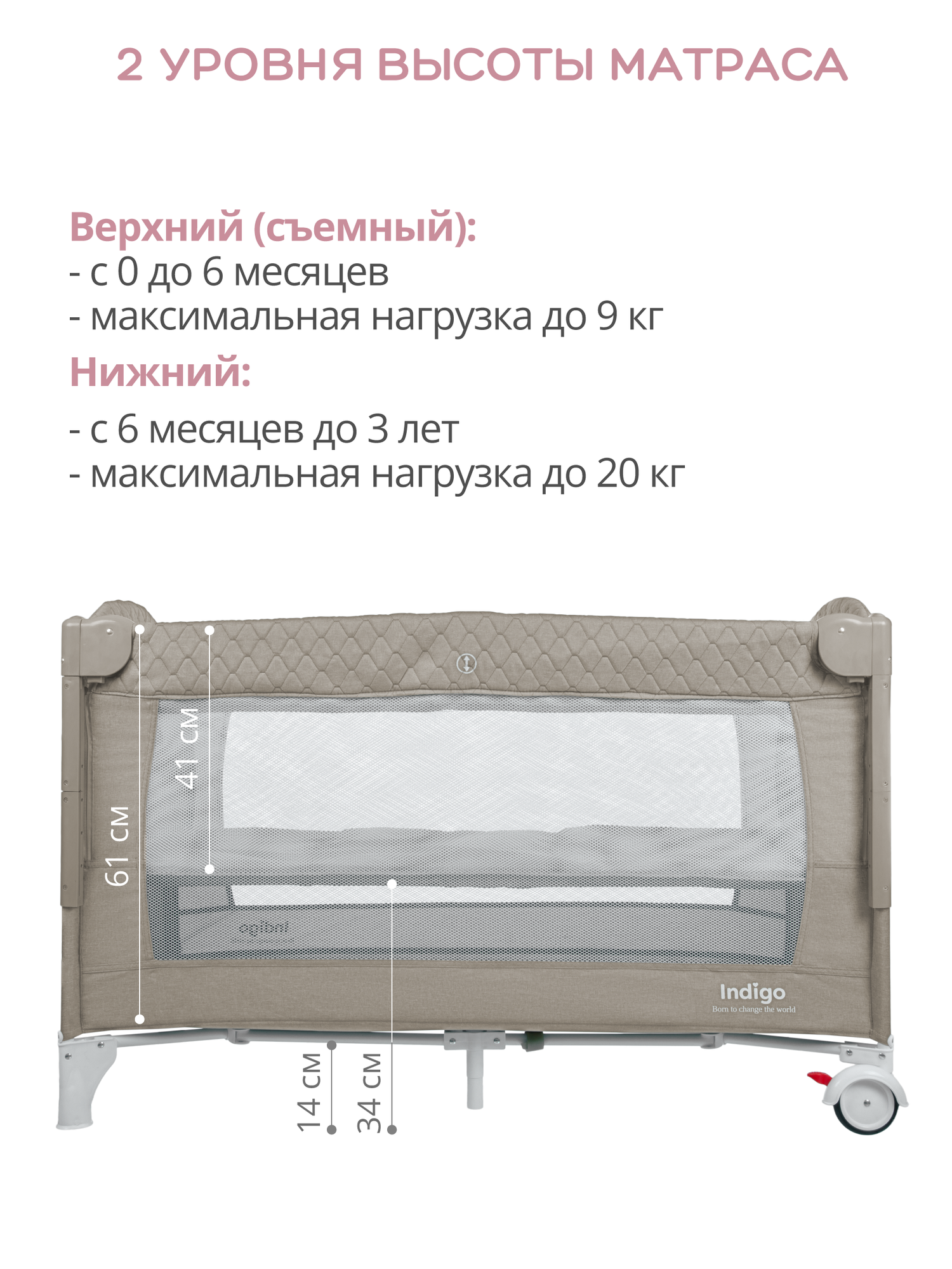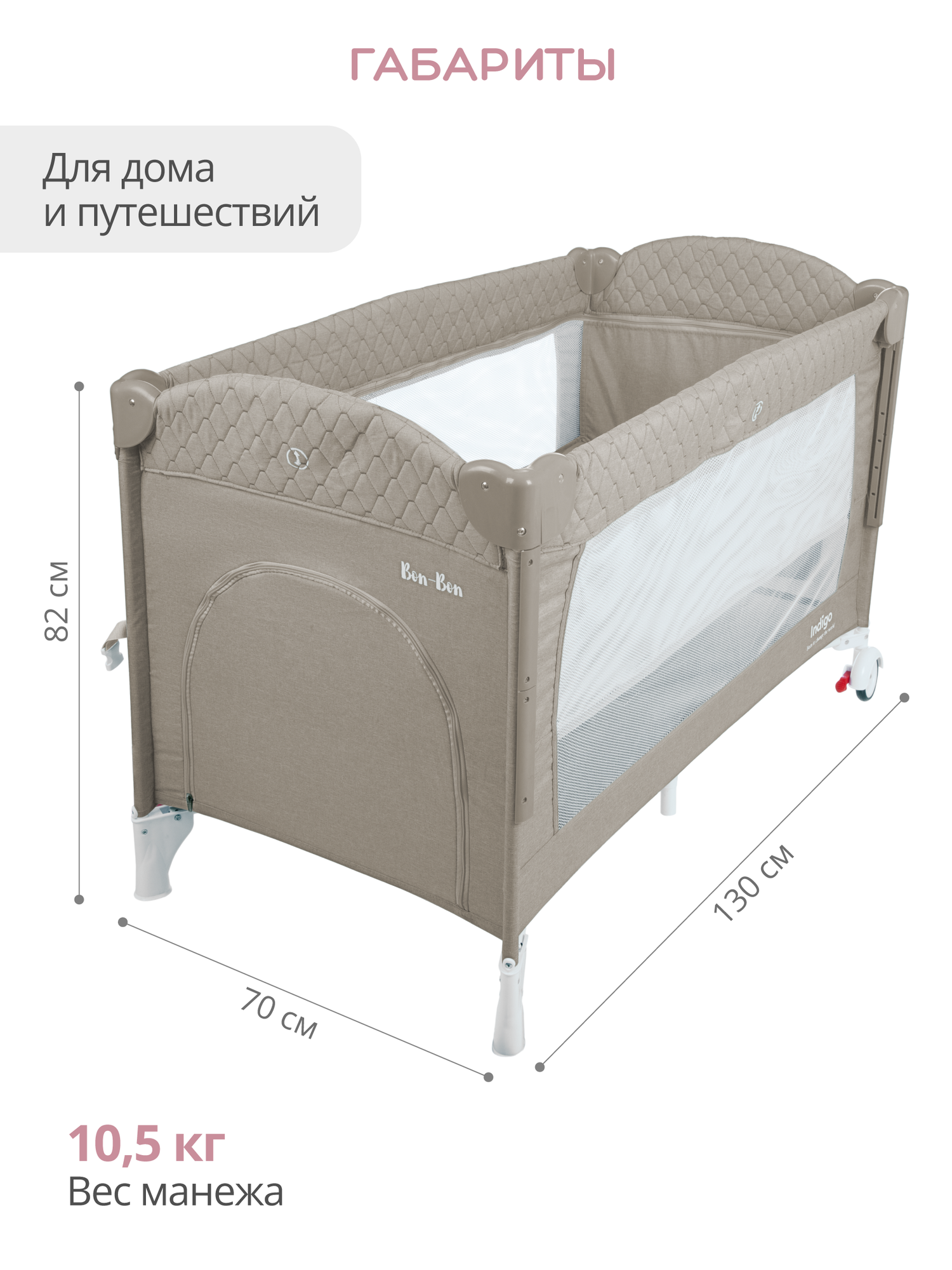 Манеж-кровать 3 в 1 Indigo Bon-Bon, 0-36 мес, складной, 2 уровня, бежевый интересное: