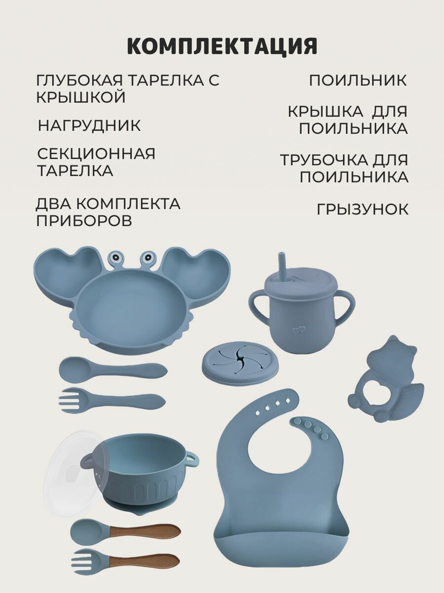 Набор детской посуды из 12 предметов для кормления силиконовый