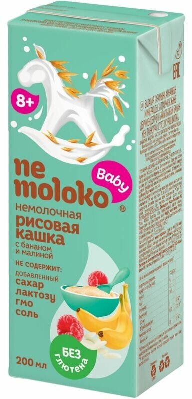 Каша безмолочная "Nemoloko" рисовая с бананом и малиной пакет 200мл интересное: