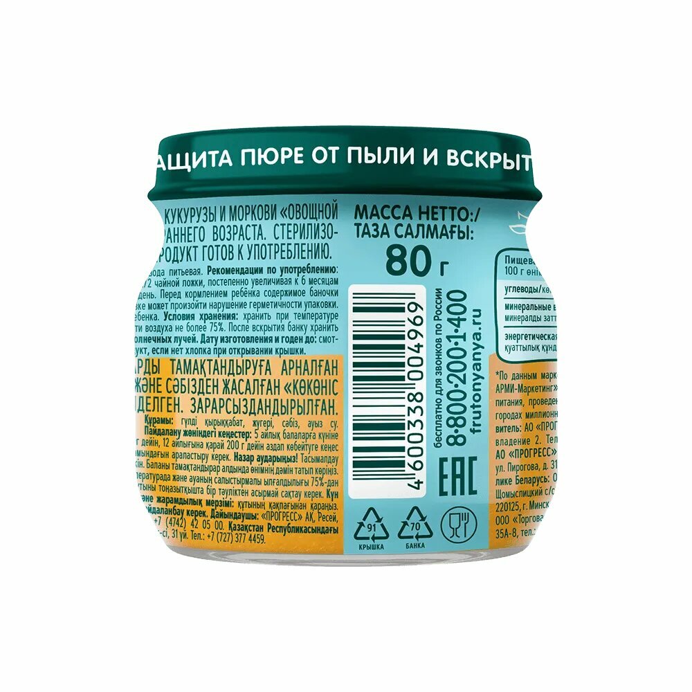 | Дополнительная информация | букву–код, указывающую на вариант состава пюре, смотри на крышке банки рядом с датой изготовления |