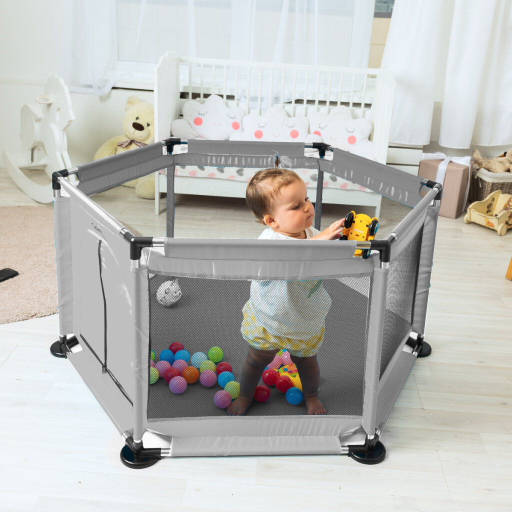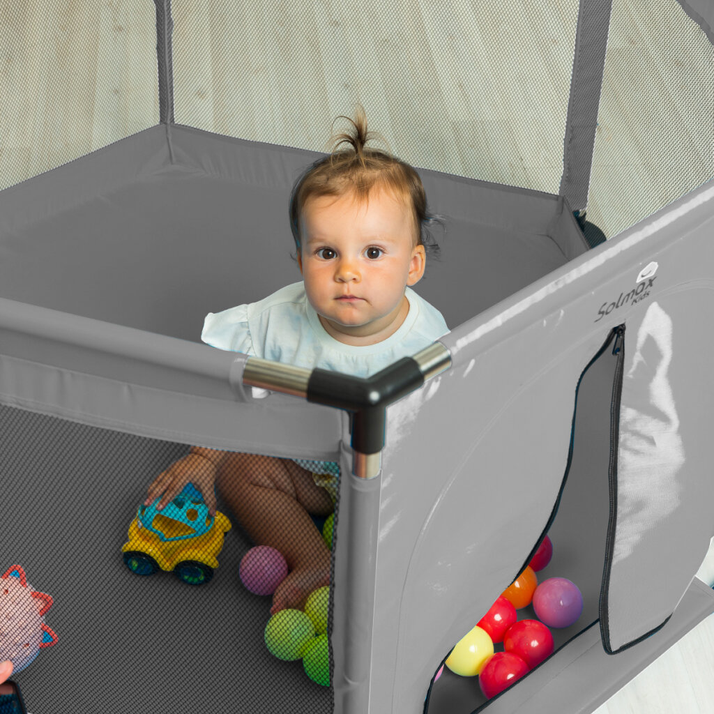 Купить Манеж детский напольный SOLMAX игровой с шариками для сухого бассейна, серый, 64х64х125