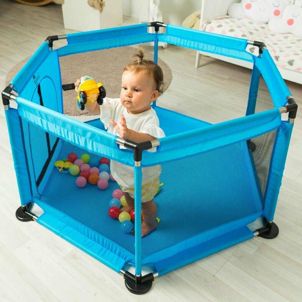 Купить Манеж детский напольный SOLMAX игровой с шариками для сухого бассейна, голубой, 64х64х125