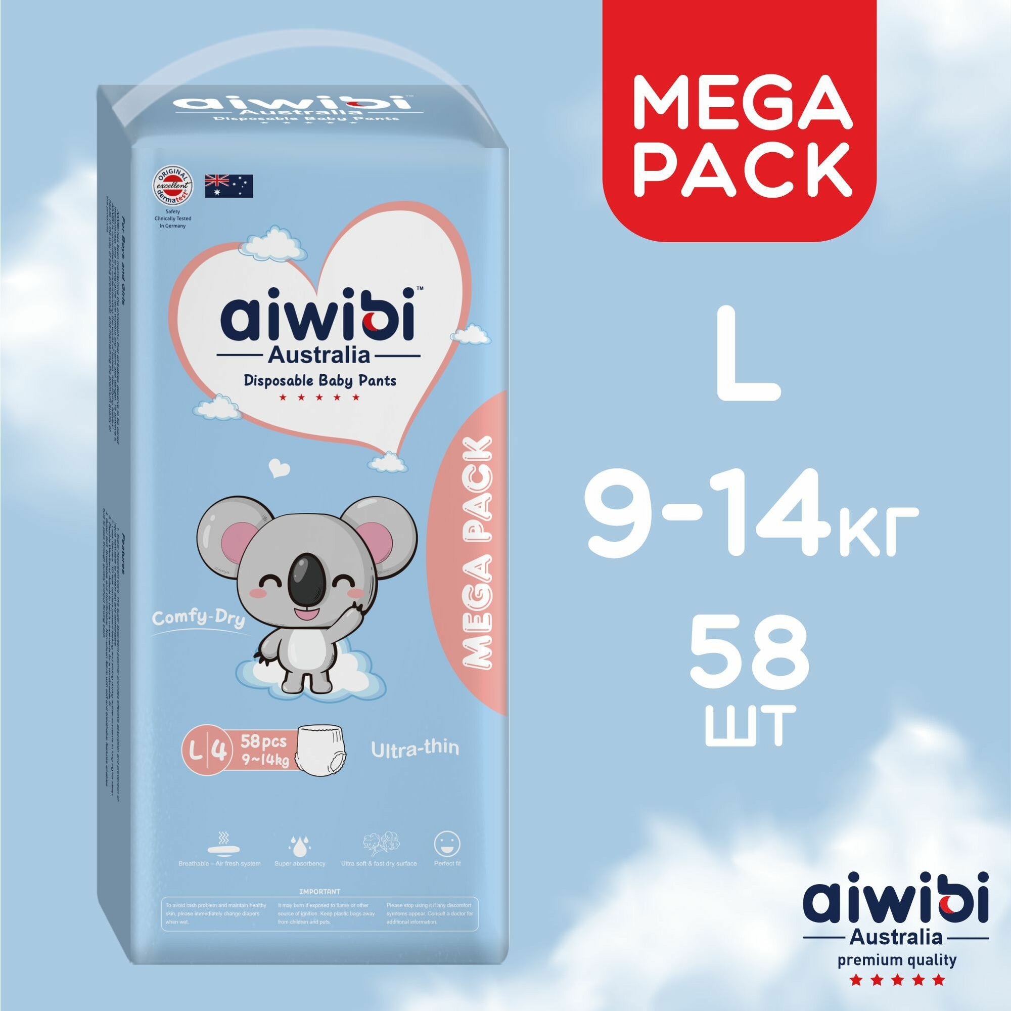 Купить Трусики-подгузники детские AIWIBI Comfy dry L (9-14кг) 58 шт айвиби, памперсы
