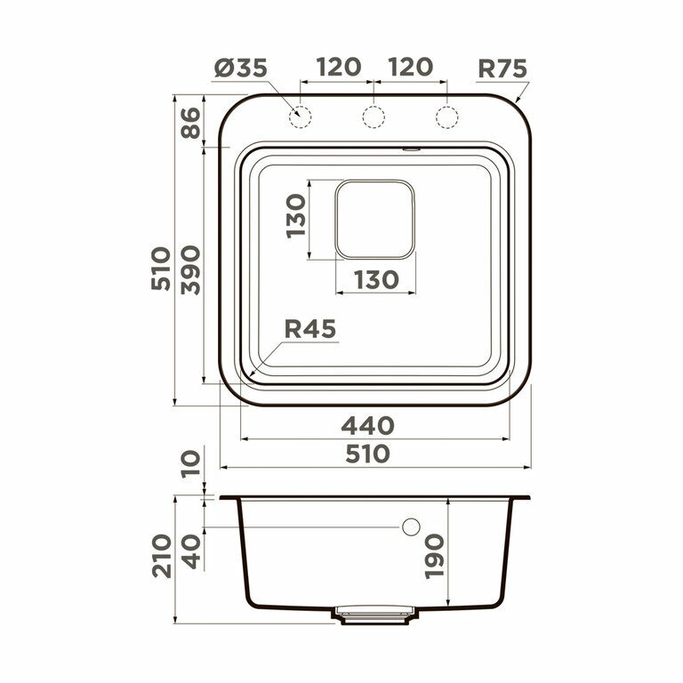 | Плюсы: | Стильная и вместительная мойка! Можно сделать два дополнительных отверстия (для диспенсера или кнопки измельчитель) |