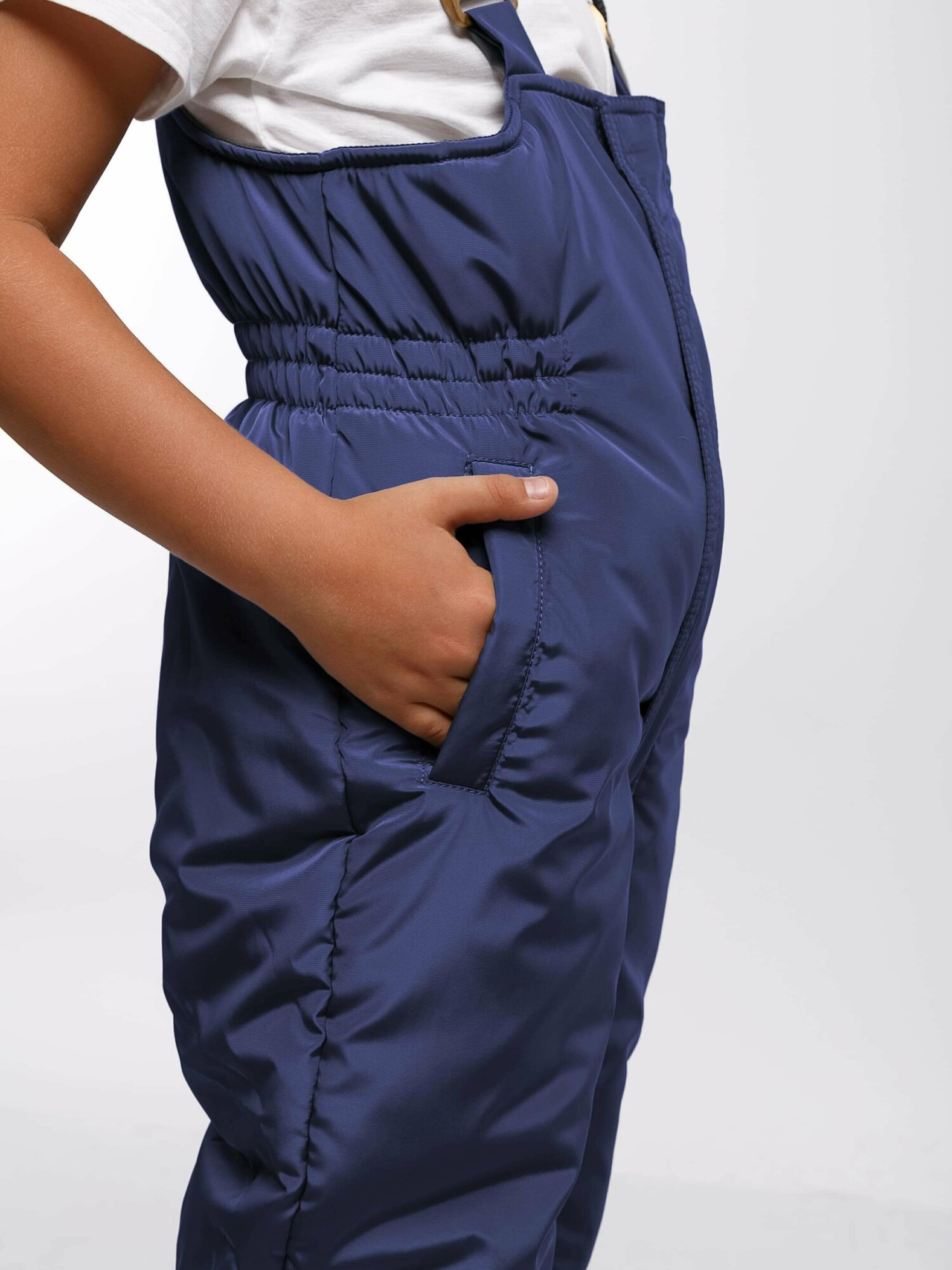 Зимний темно-синий утепленный полукомбинезон для мальчика болоневый непромокаемый из мембраны на резинке с бретелями KAYSAROW Москва рост 104