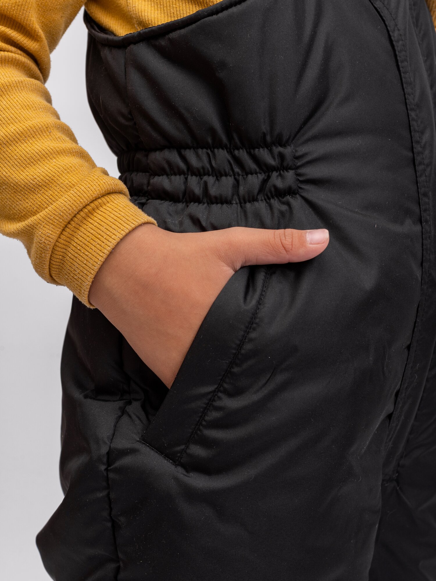 Зимний черный утепленный полукомбинезон для мальчика болоневый непромокаемый из мембраны на резинке с бретелями KAYSAROW Москва рост 110