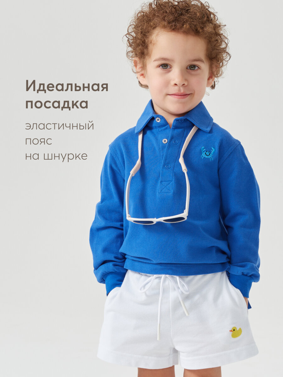 88200, Шорты детские хлопковые Happy Baby, на резинке со шнурком, для девочки и для мальчика, шорты летние, белые, размер 104-110 интересное: