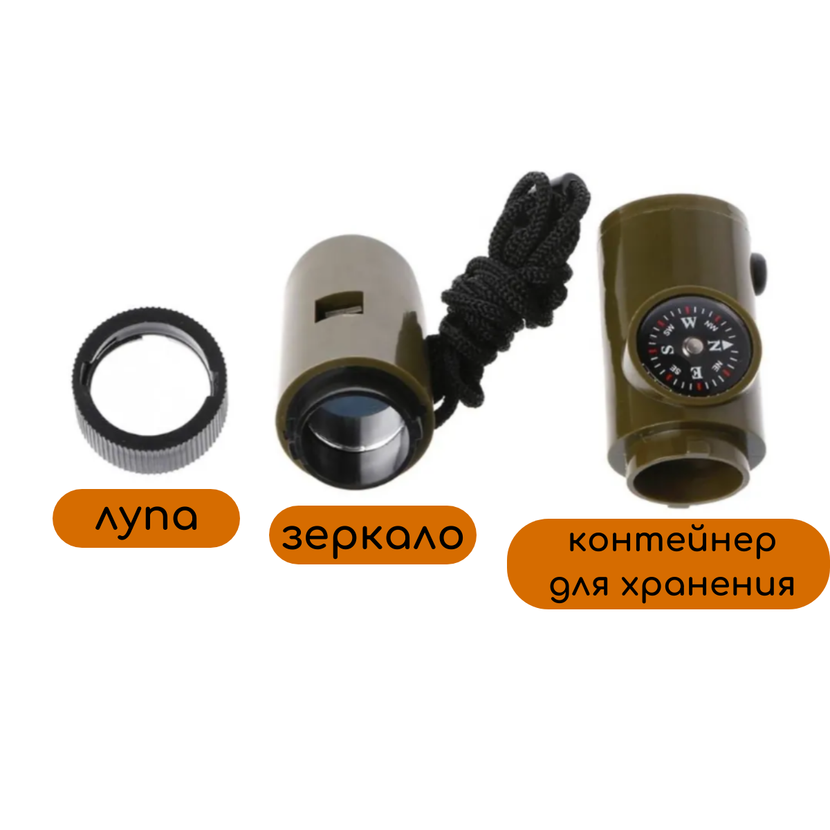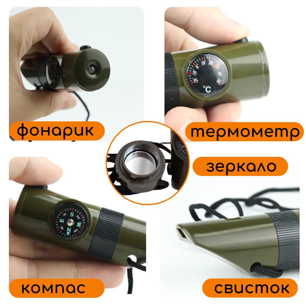 Свисток туристический с компасом, термометром, фонариком 7в1. интересное: