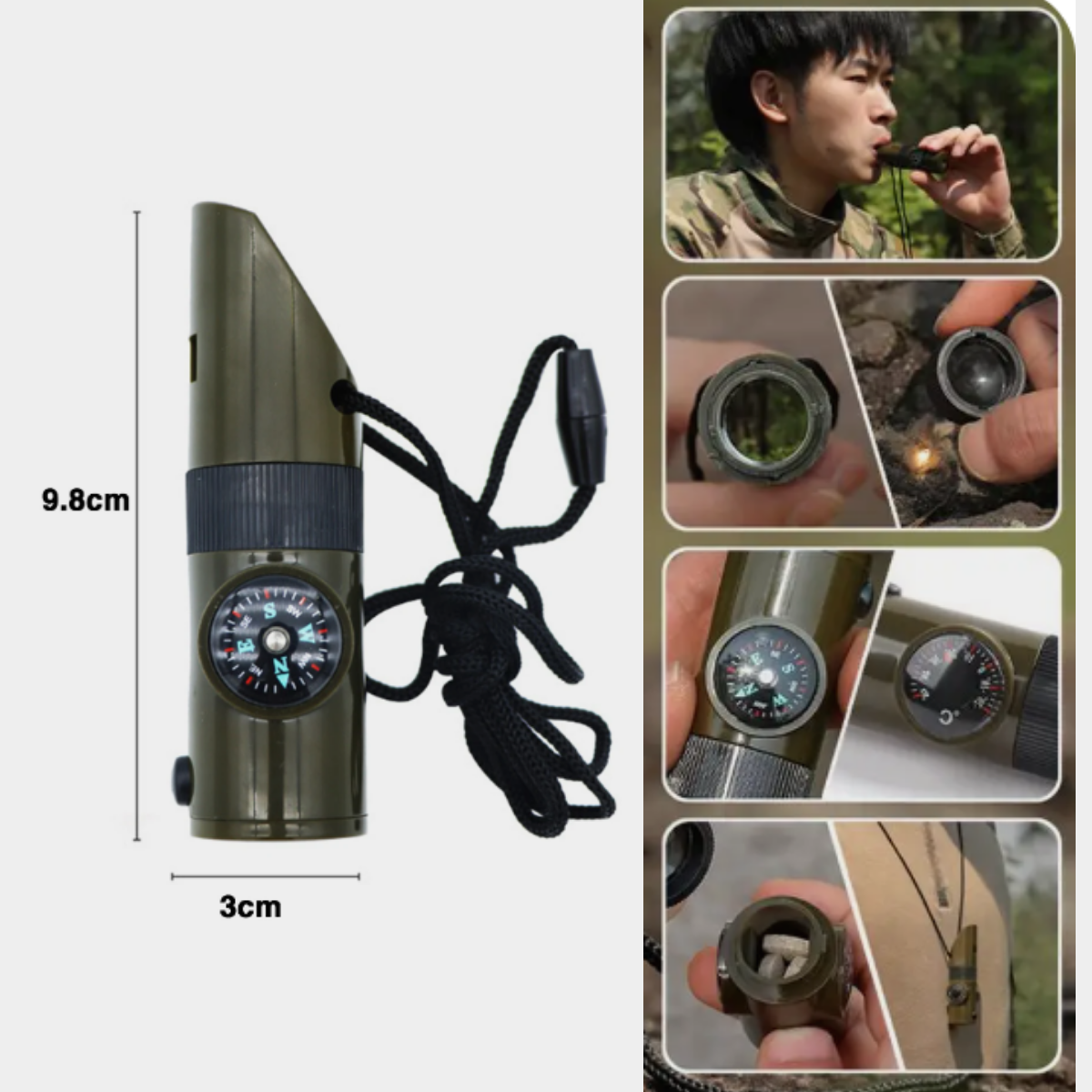 Купить Свисток туристический с компасом, термометром, фонариком 7в1.