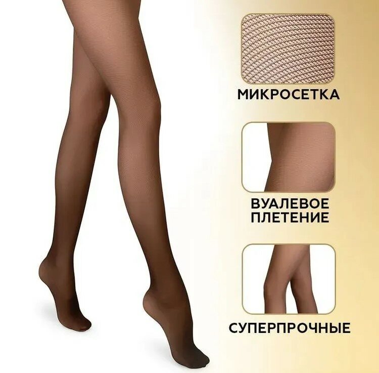 Колготки Innamore Microtulle, с ластовицей, в сетку, размер 3, бежевый