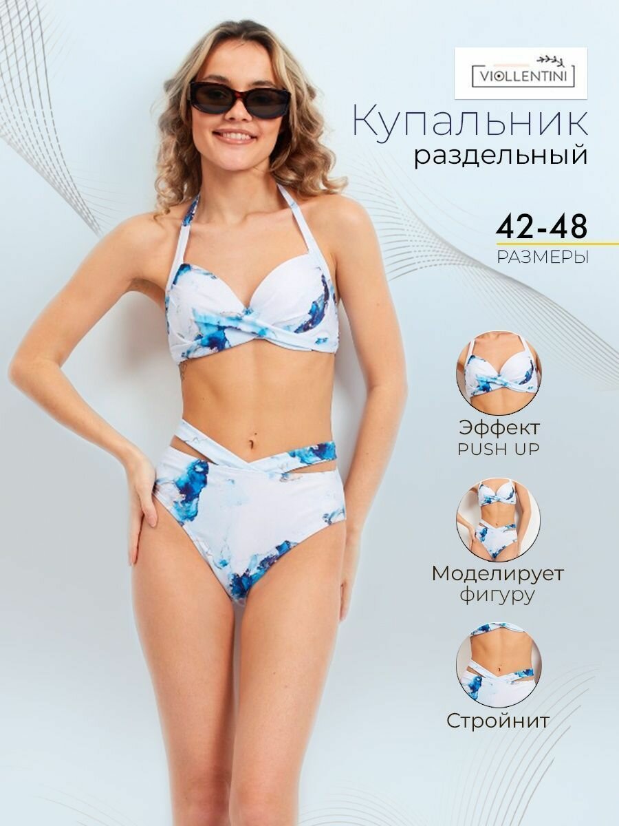 Купальник VIOLLENTINI, размер 48, белый, синий, голубой