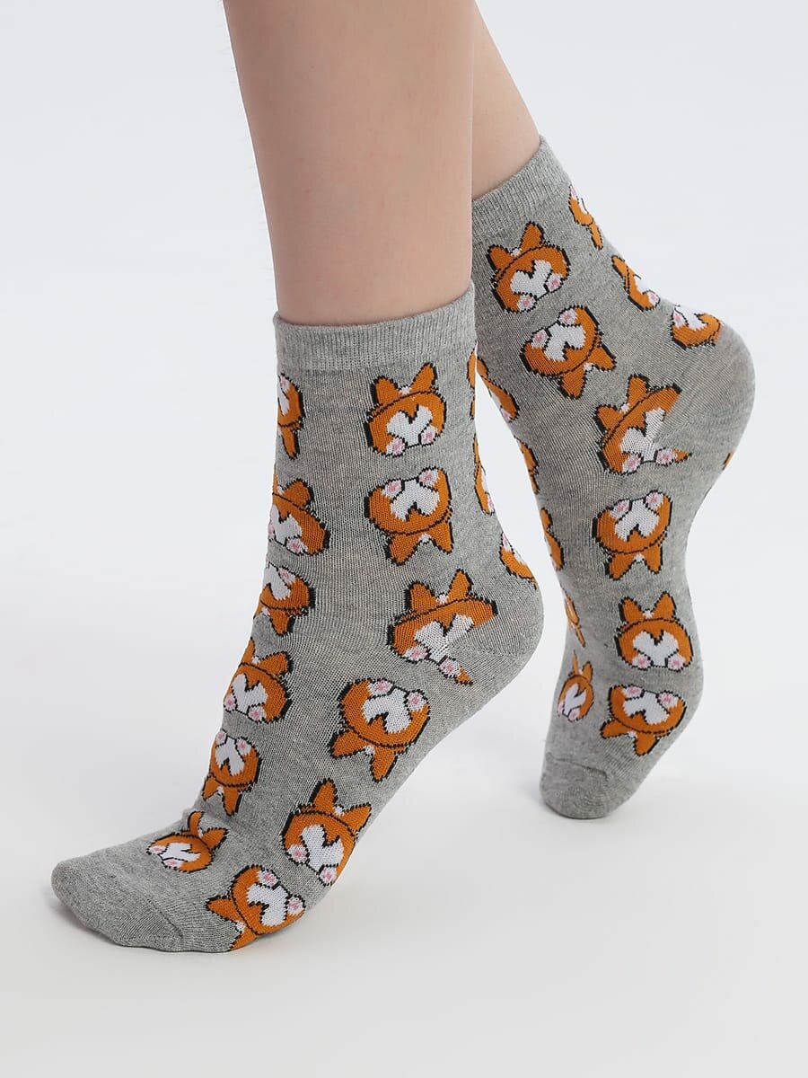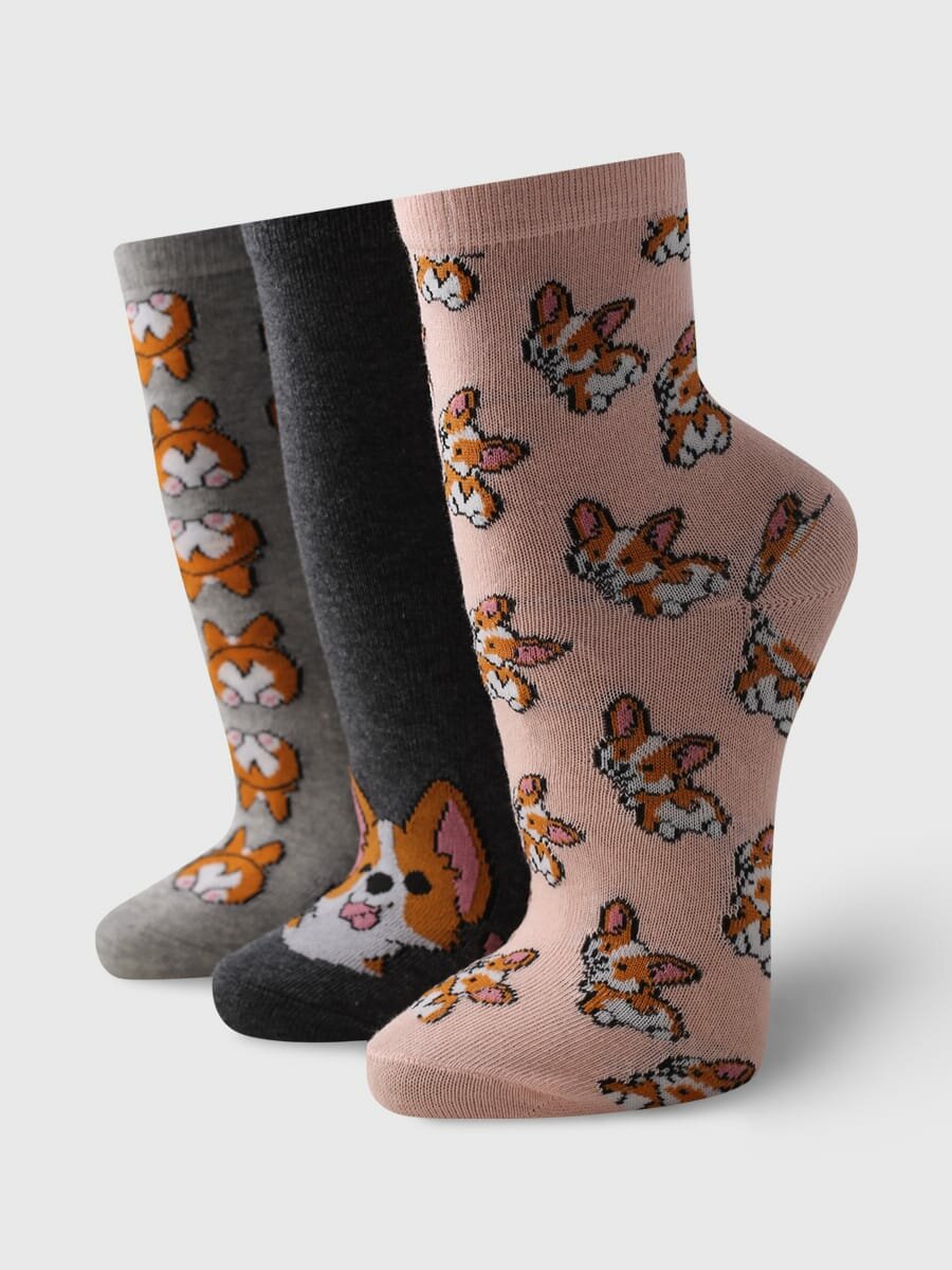 Купить Набор носков с принтом корги - 3 пары твое, арт. B0384,мультицвет,35-41