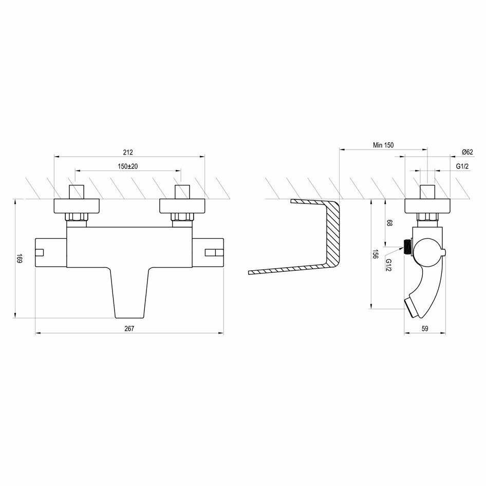 Смеситель для ванны термостатический RAVAK Termo TE 082.00/150 настенный