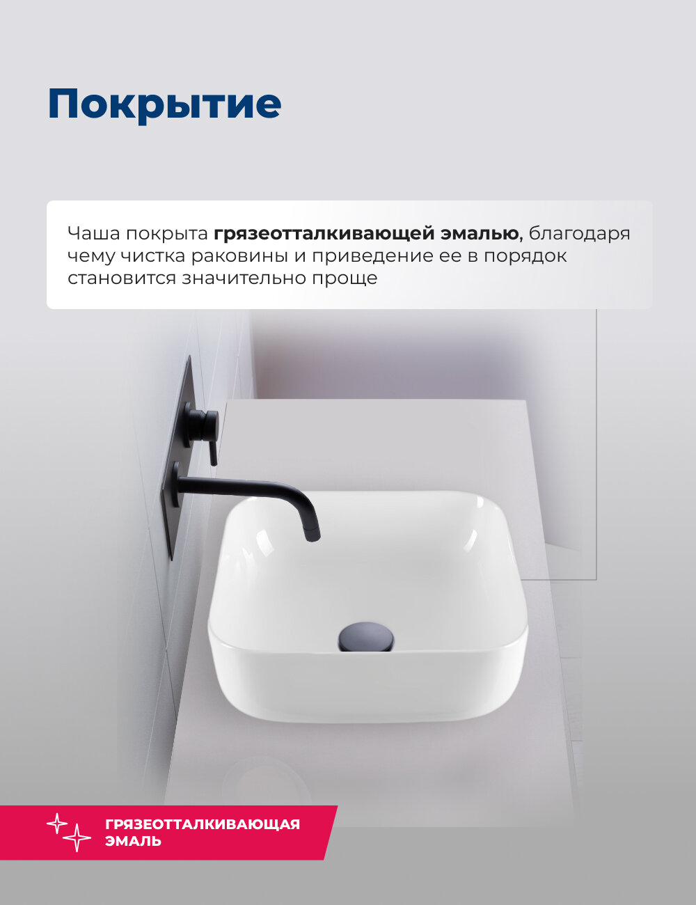 | Плюсы: | Красивая, минималистичная раковина. Вода стекает хорошо, логотипа нет - для меня это плюс |