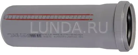 | Дополнительная информация | устойчивость к воздействию агрессивных сточных вод pH 2 - pH 12, огнестойкость по DIN 4102 класс B1; цвет RAL 7037; на трубах нанесена сантиметровая линейка для удобства монтажа; диаметр раструба 105 мм, длина раструба 58 мм |