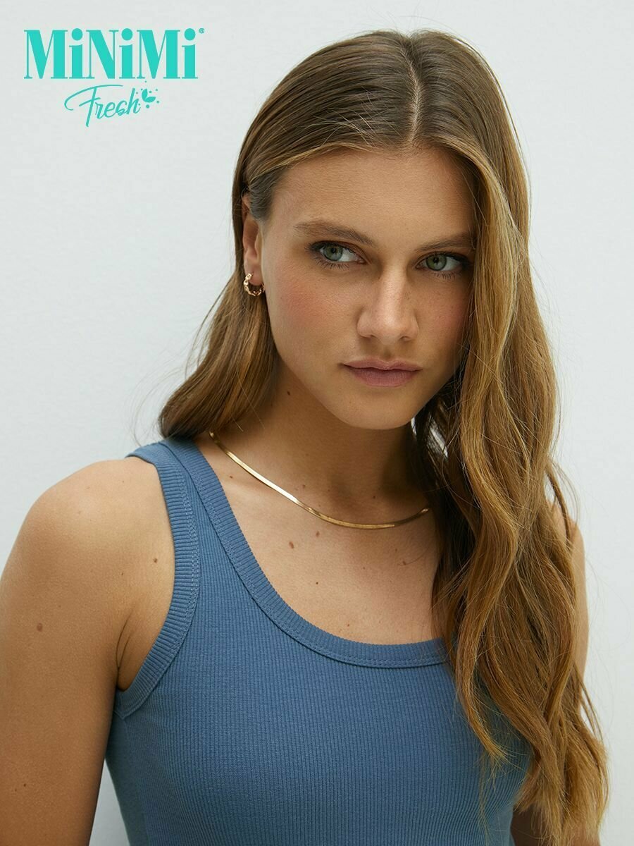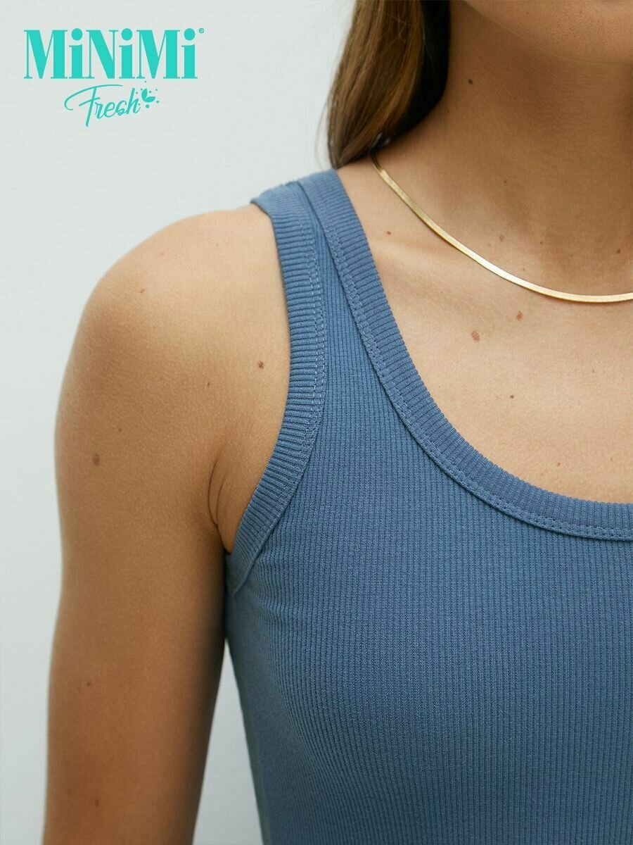Майка женская MiNiMi BMi_F 1321_01CE топ в рубчик, хлопок, повседневная, цвет Jeans , размер 44/S