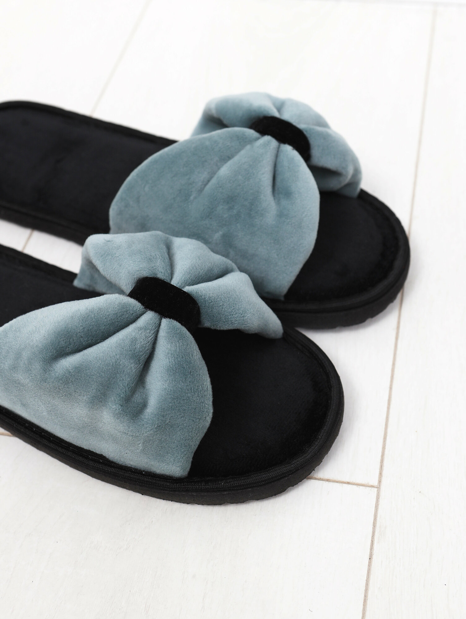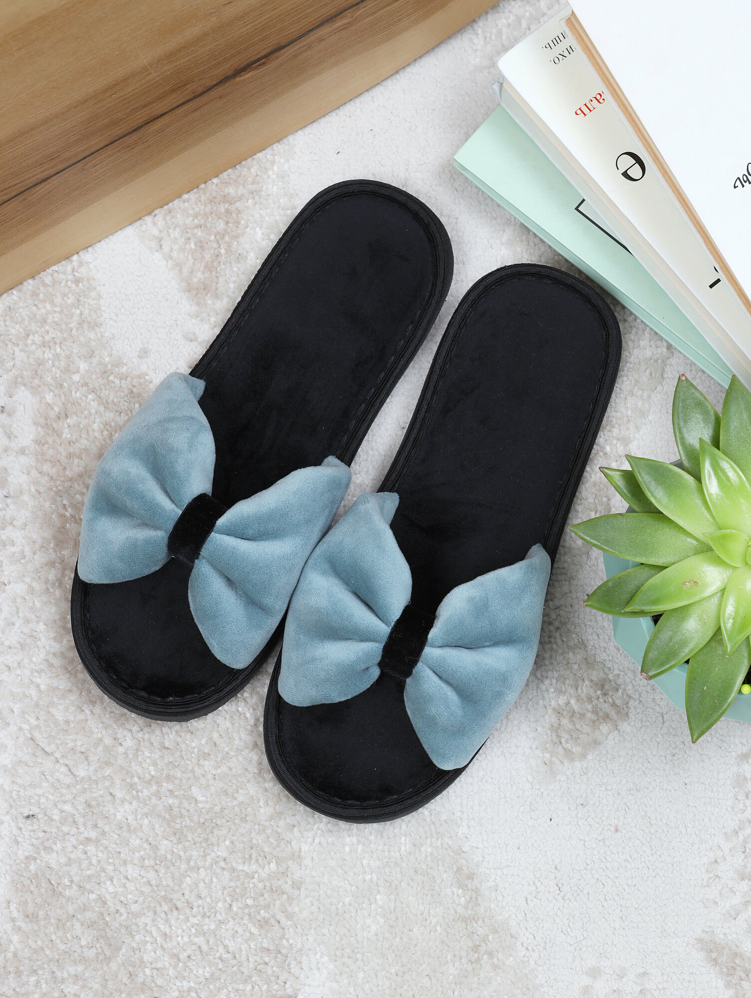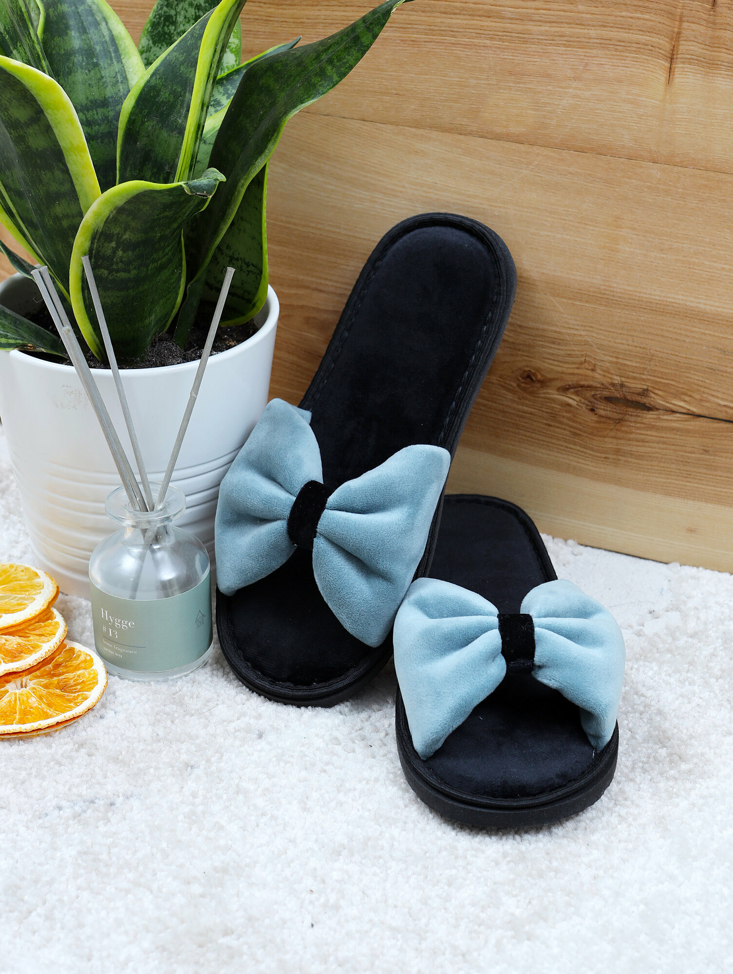 Тапочки ALBERY тапочки женские/тапочки для дома/велюровые тапочки/тапочки с бантом/домашние тапочки/мягкие женские тапочки/комнатные тапочки/домашняя обувь, размер 40-41, голубой