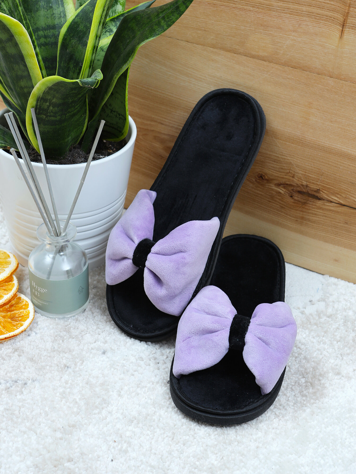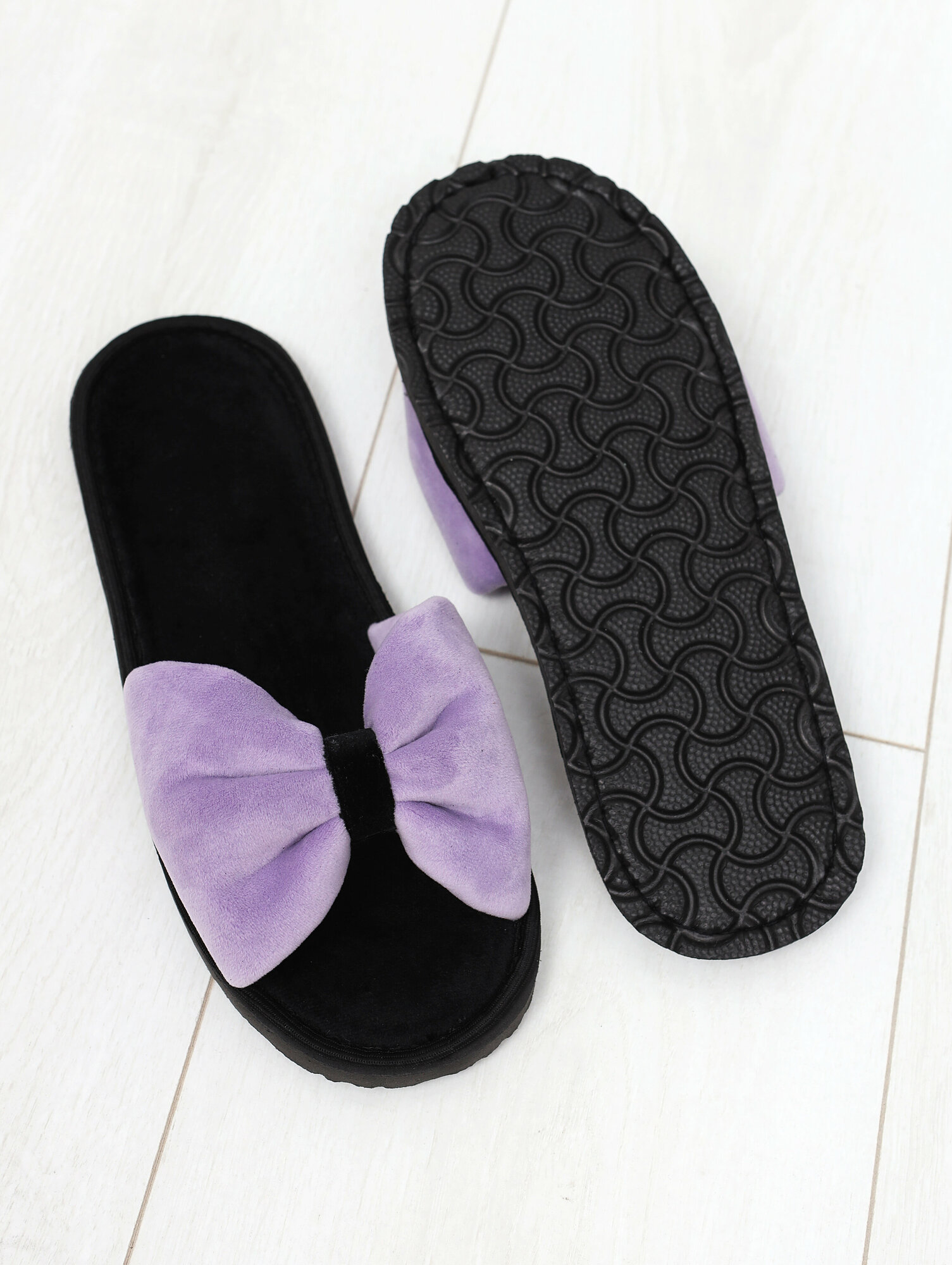 Тапочки ALBERY тапочки женские/тапочки для дома/велюровые тапочки/тапочки с бантом/домашние тапочки/мягкие женские тапочки/комнатные тапочки/домашняя обувь, размер 38-39, черный