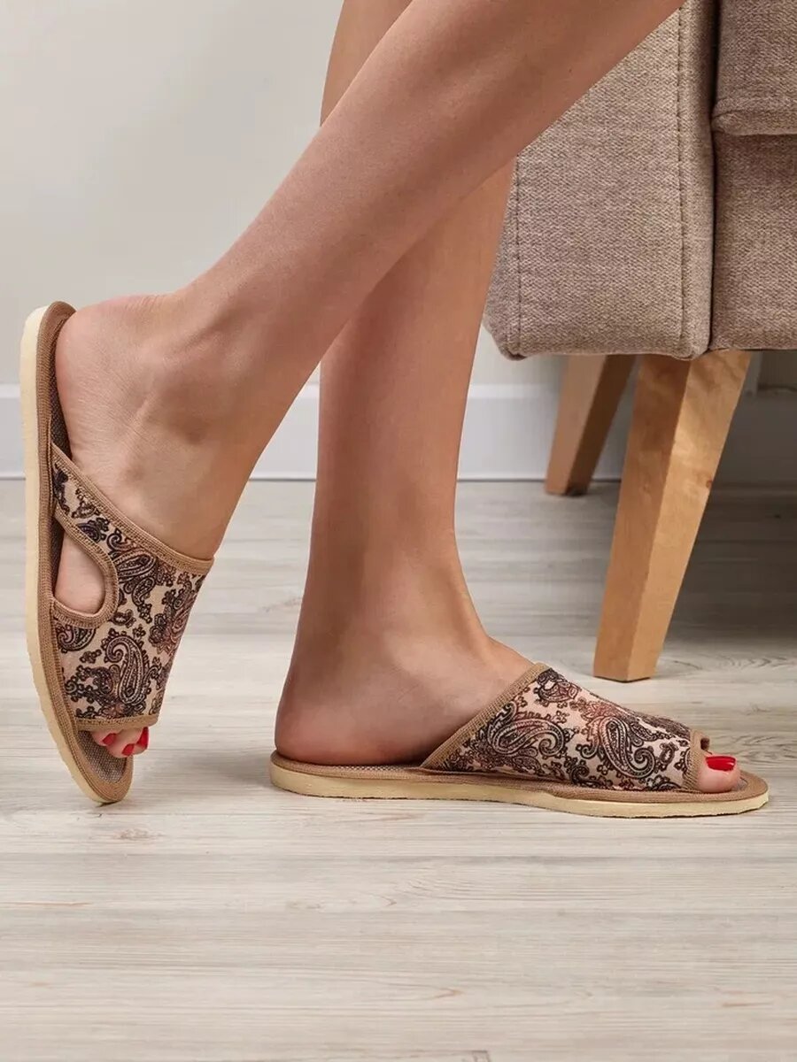 Купить Женские домашние тапочки "LepiloV", открытые, на текстильной стельке. Размер 41. Бежевые огурцы.