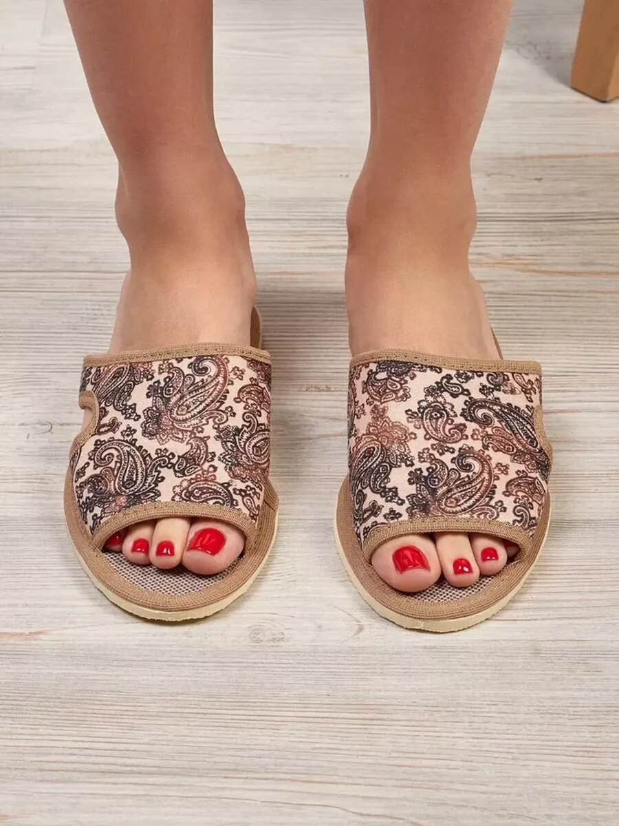 СохранитьЖенские домашние тапочки "LepiloV", открытые, на текстильной стельке. Размер 41. Бежевые огурцы. интересное: