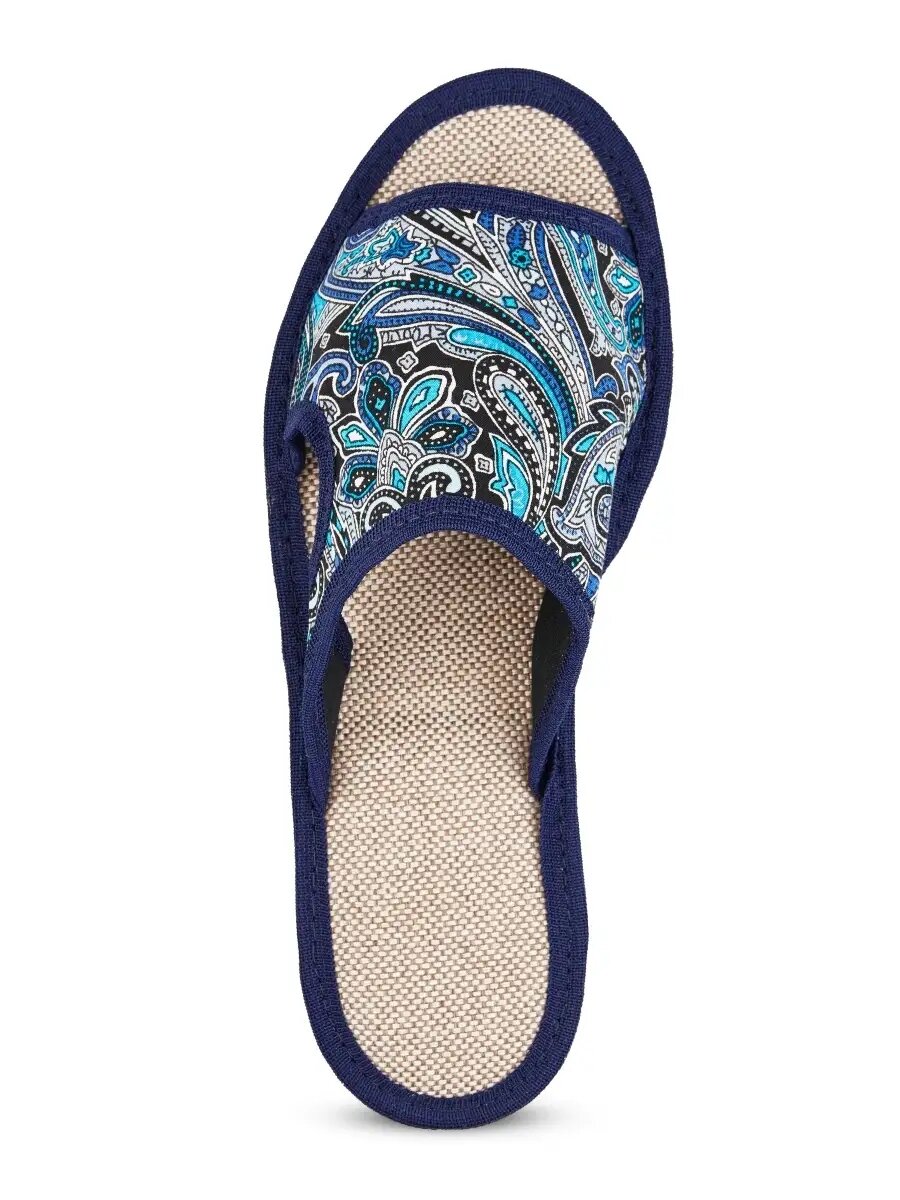 Женские домашние тапочки "LepiloV", открытые, на текстильной стельке. Размер 41. Синие, горох с цветами.