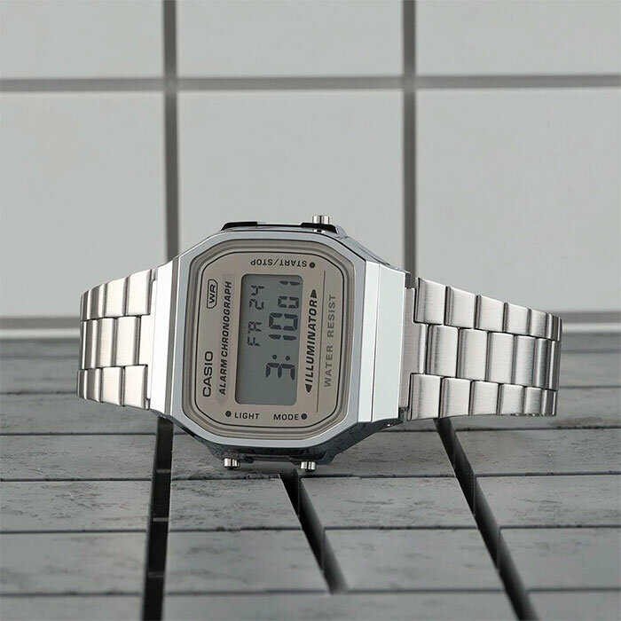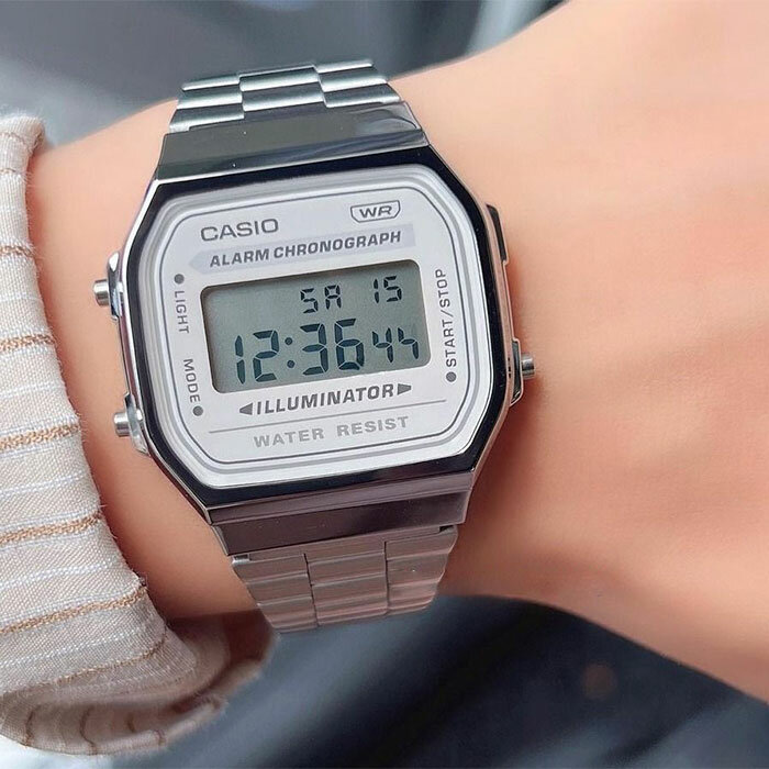 A168WA-8A Casio наручные часы кварцевые WR30 (3 атм) мужские, женские секундомер будильник отображение числа, отображение дня недели, отображение месяца подсветка дисплея акриловое стекло