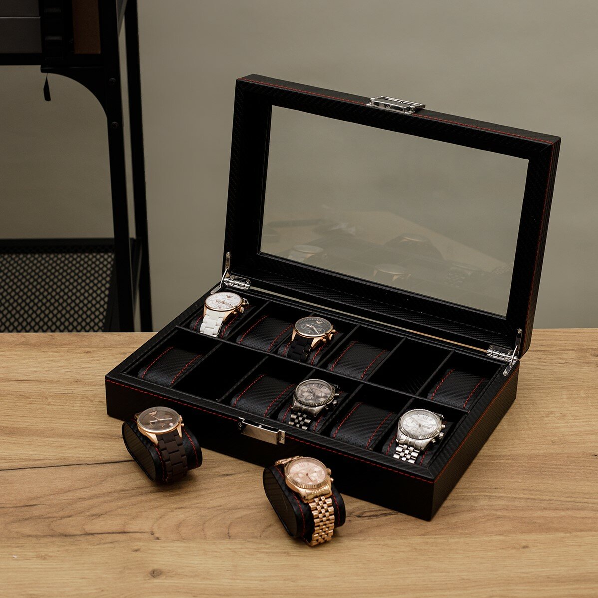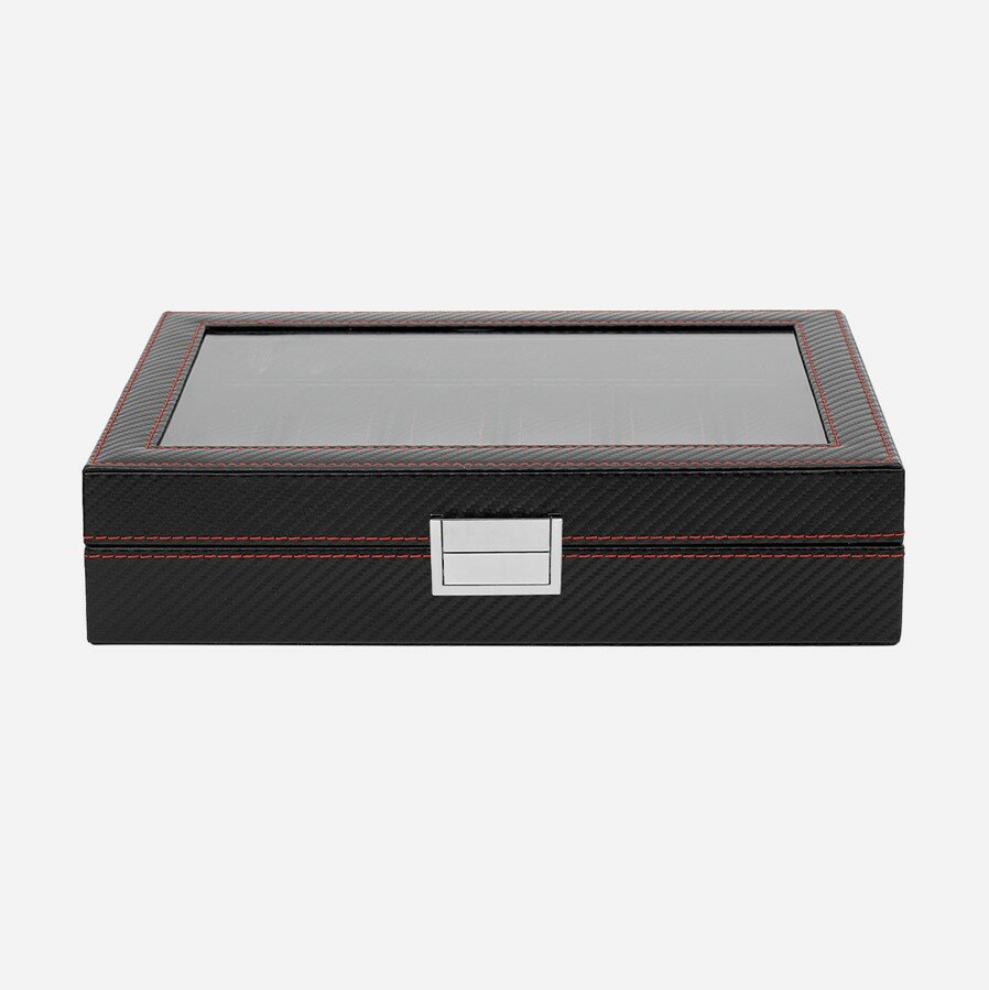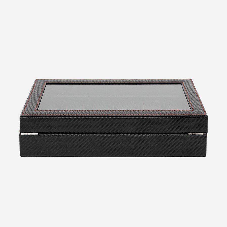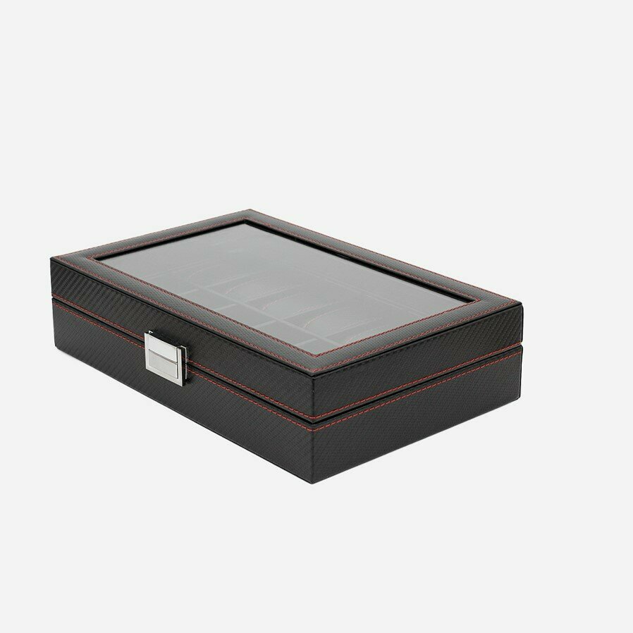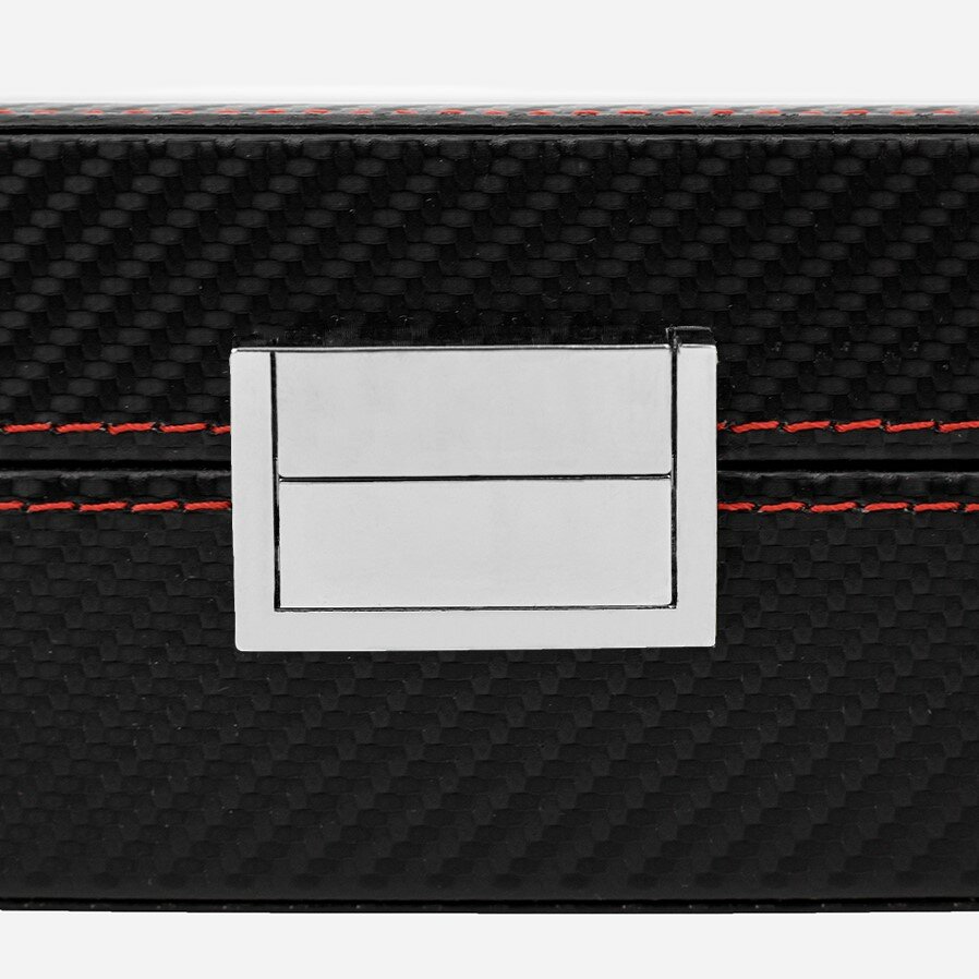 Шкатулка для хранения 12 часов CloxBox MTW90 Экокожа, черная с красной строчкой интересное: