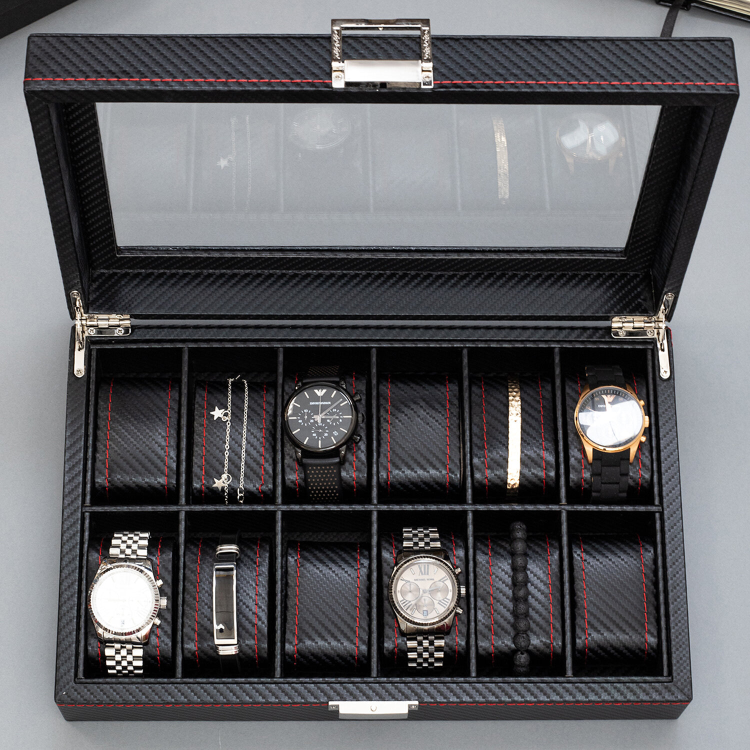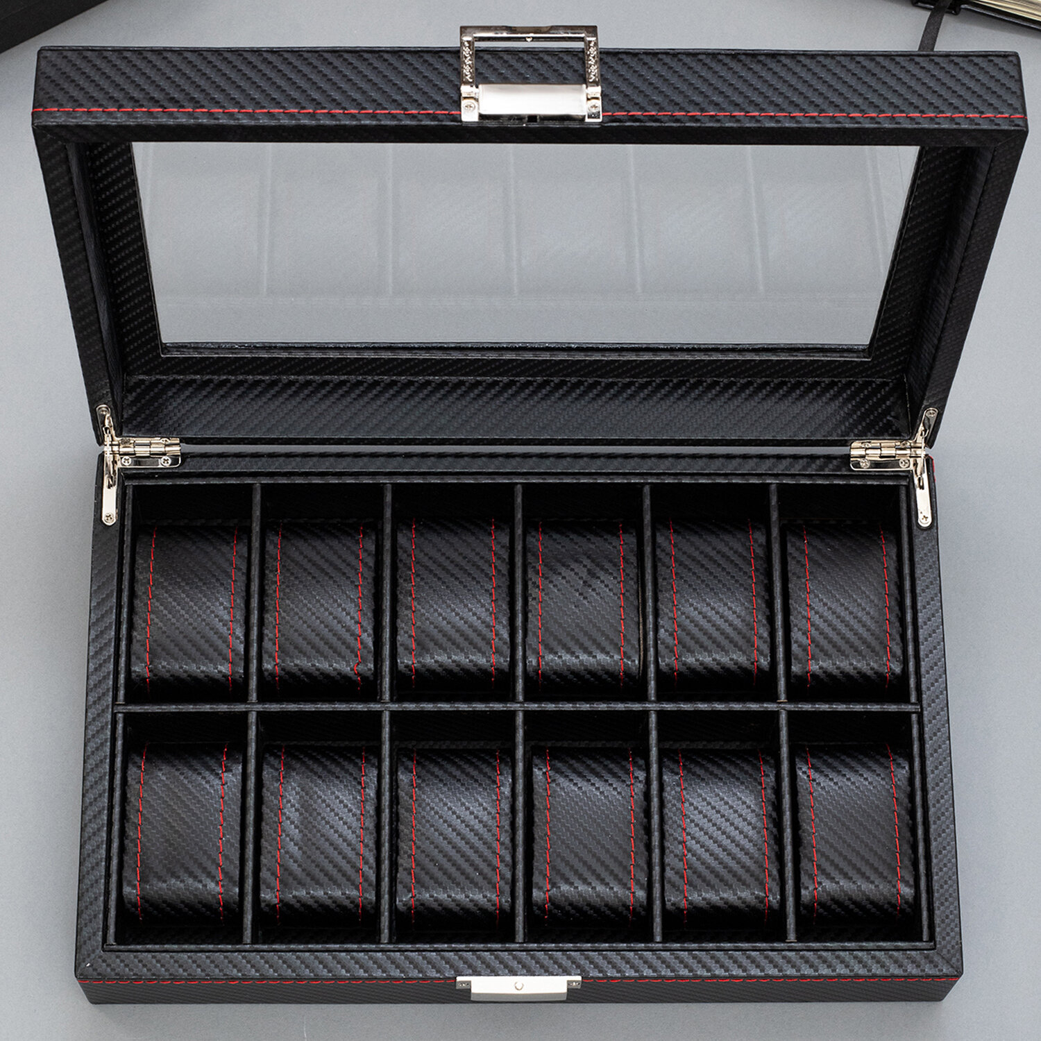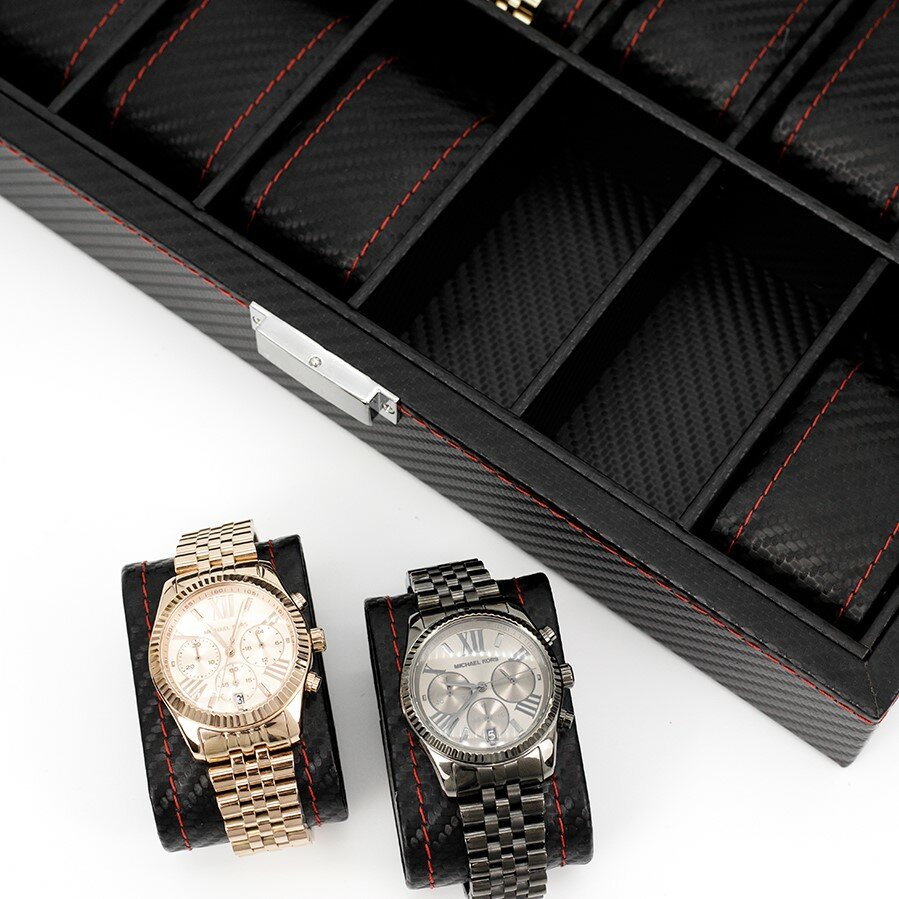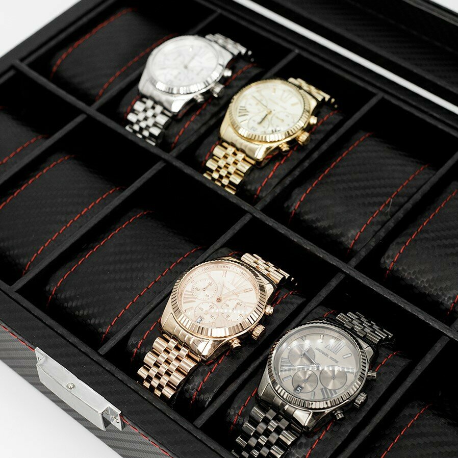 Шкатулка для хранения 12 часов CloxBox MTW90 Экокожа, черная с красной строчкой интересное:
