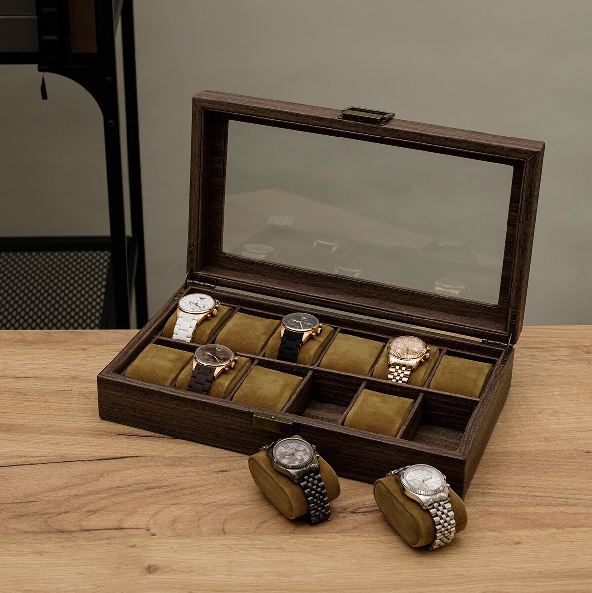 Купить Шкатулка для хранения 12 наручных часов CloxBox W100M Коричневая