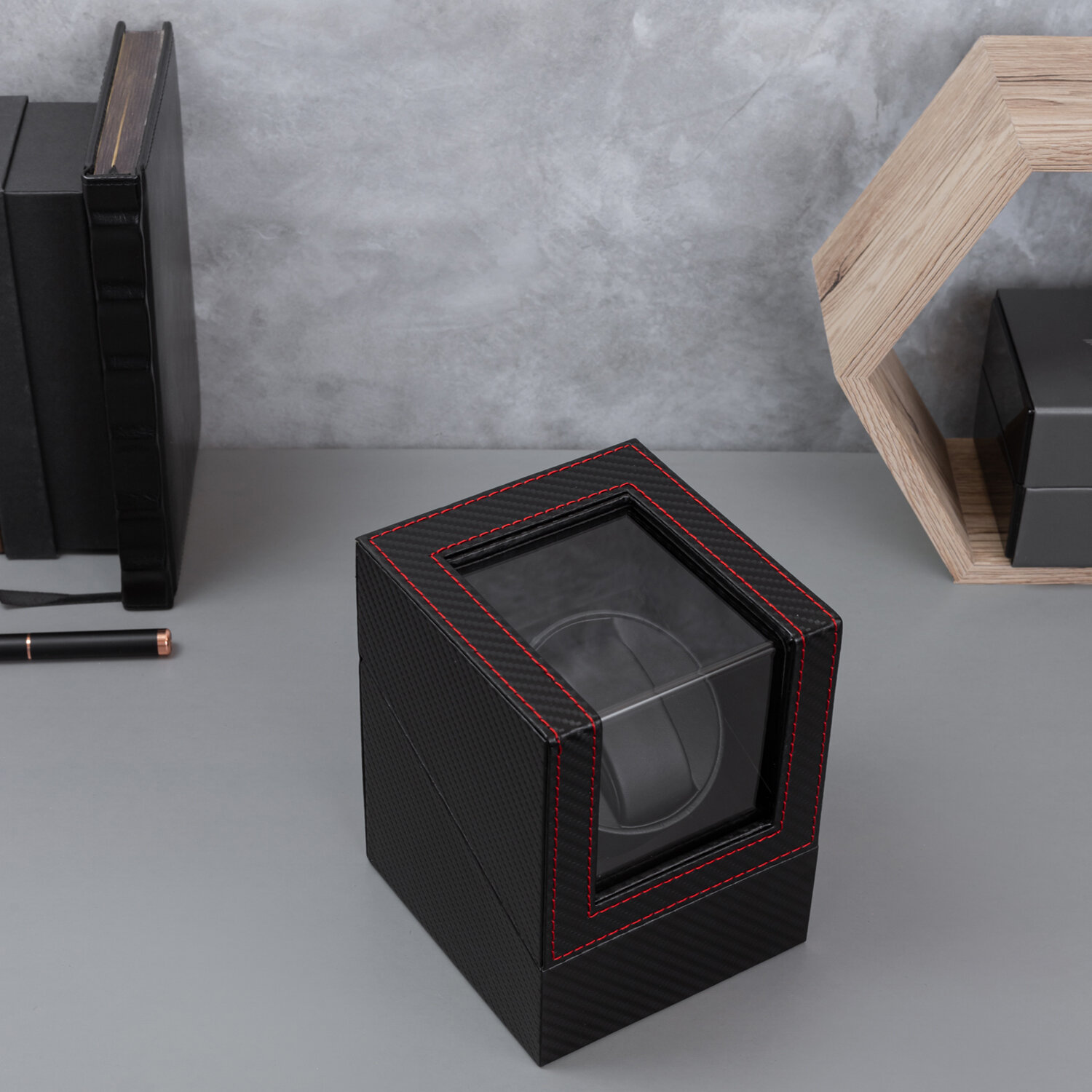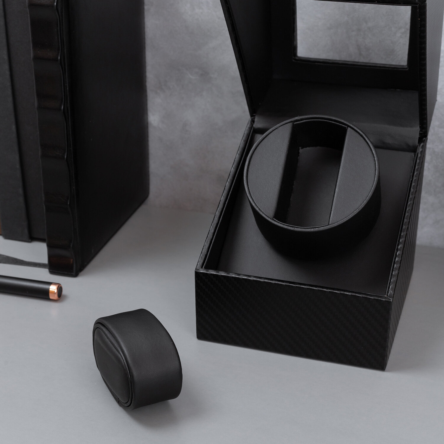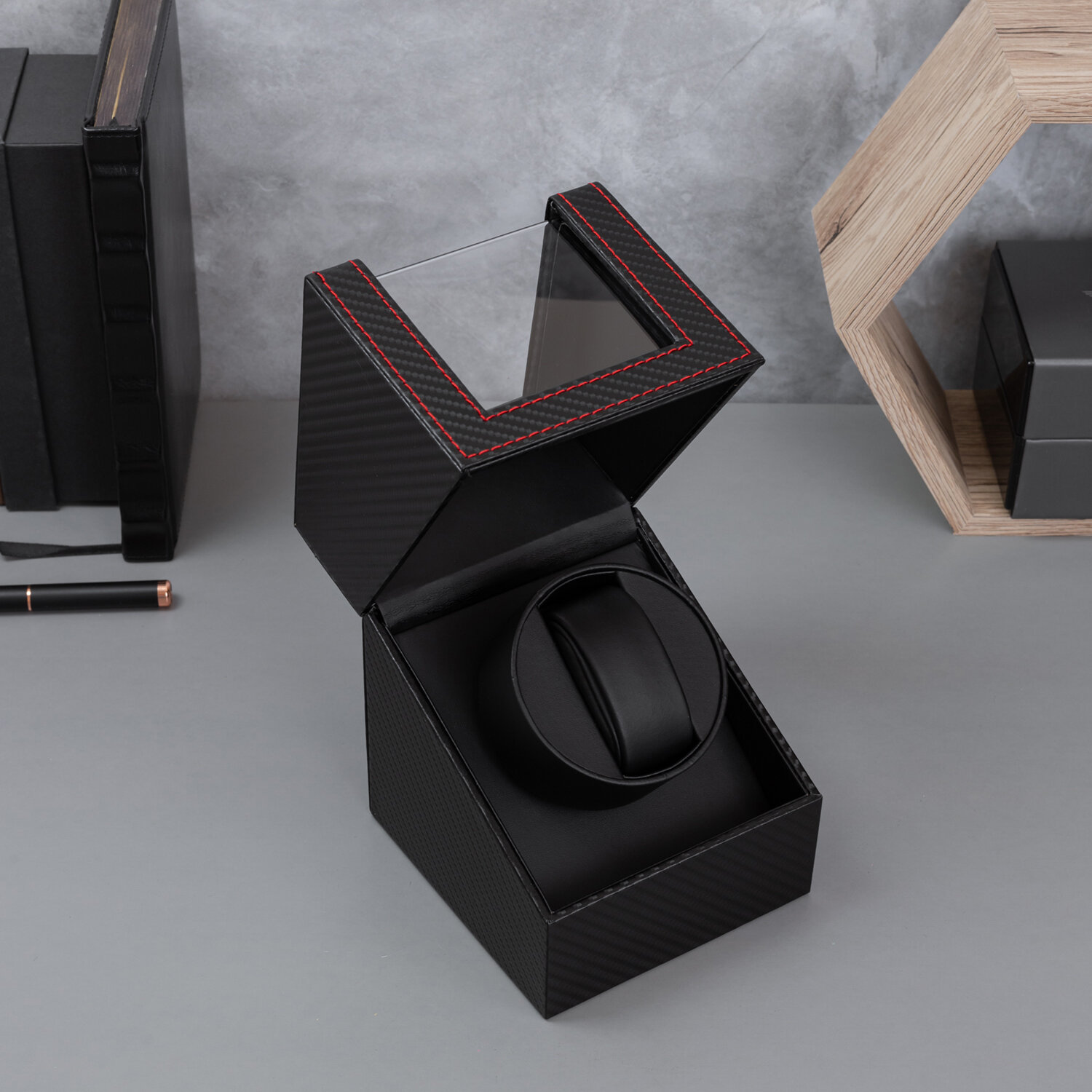 Шкатулка для автоподзавода и хранения часов CloxBox W125T Карбоновая материя, черная интересное:
