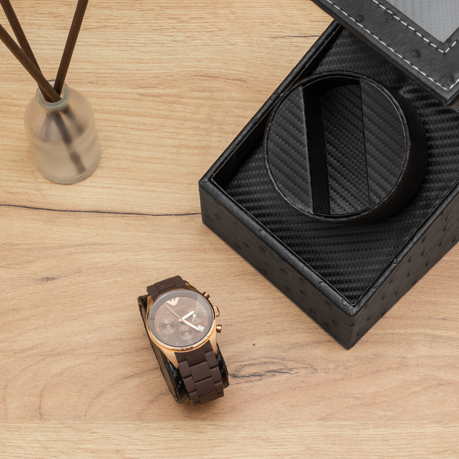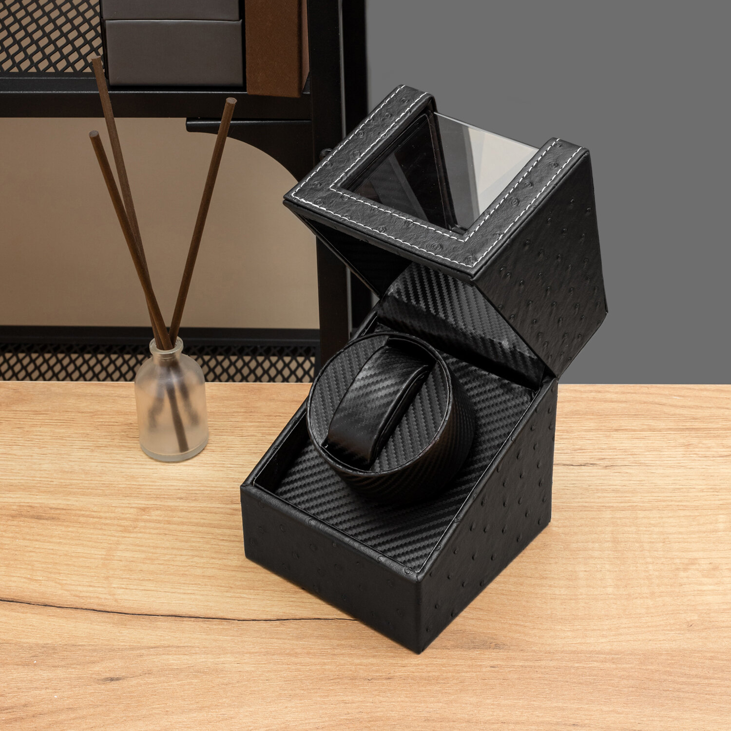 Шкатулка для автоподзавода и хранения часов CloxBox W125T Карбоновая материя, черная