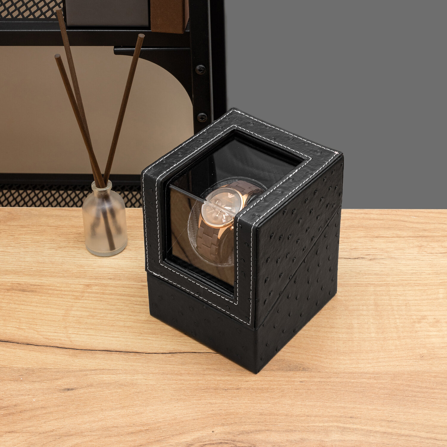 Бокс для автоподзавода одних часов CloxBox W125DT Черная, фактурная экокожа