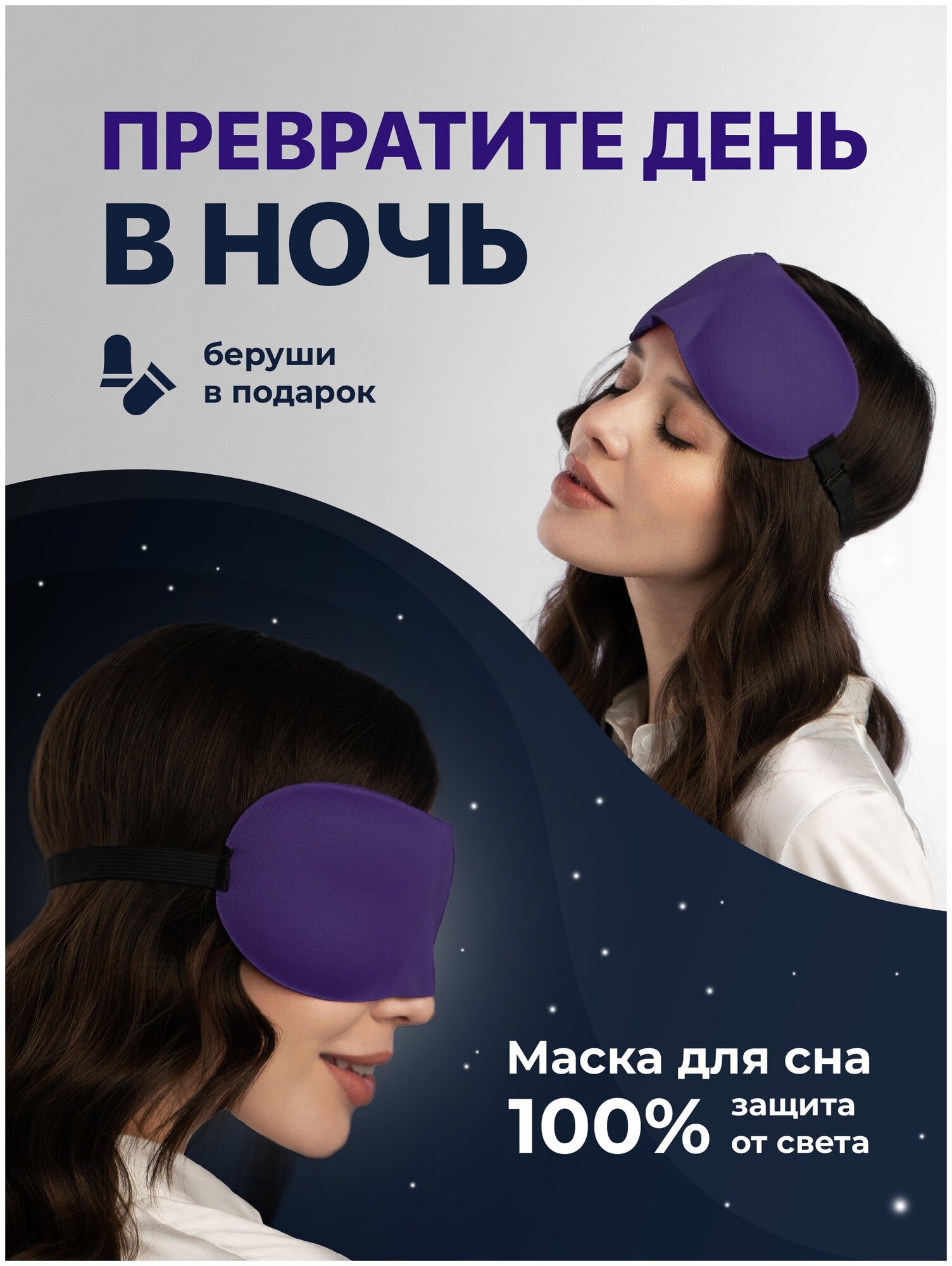 Маска для сна женская, REVOLUT, Повязка на глаза, фиолетовая интересное: