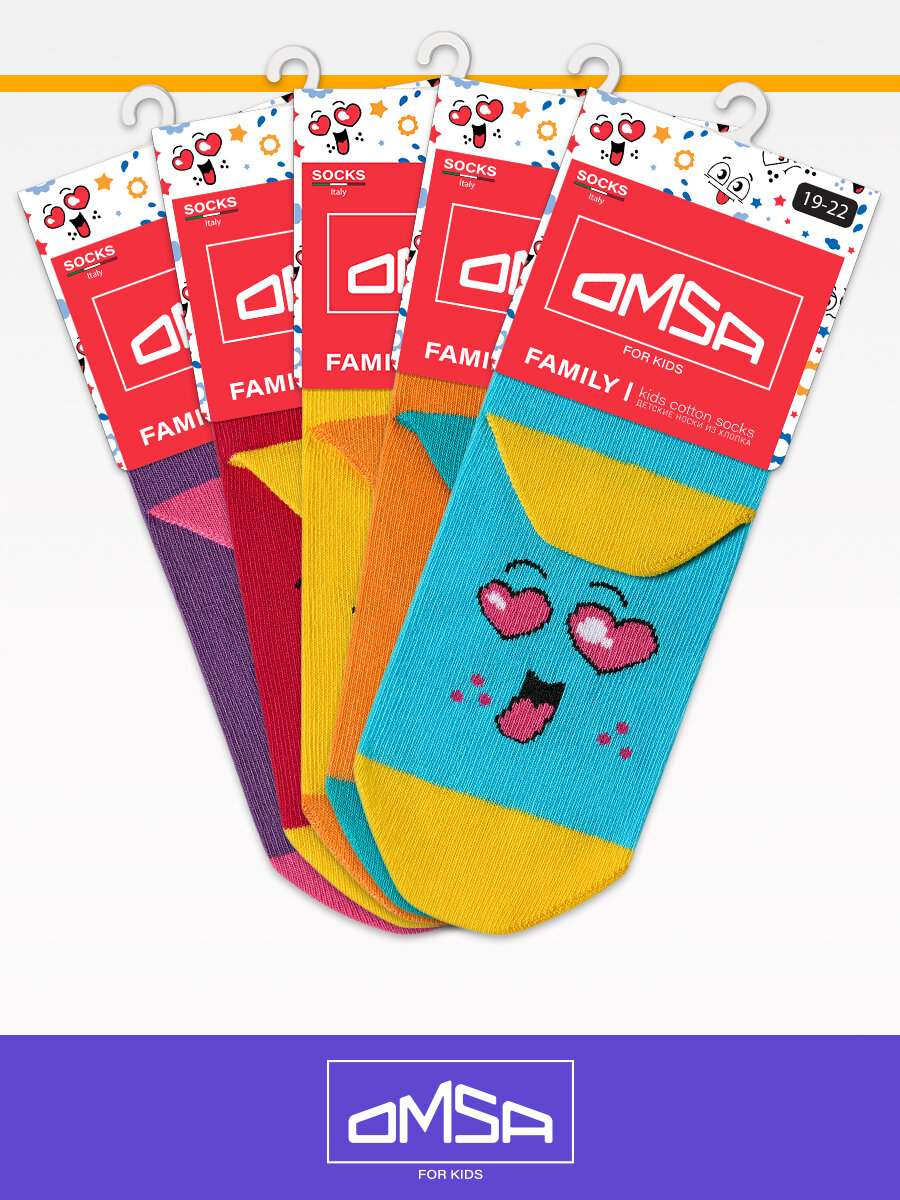 Носки детские OMSA kids Calzino 21P42, набор 5 пар, с рисунком "Смайлики" цвет Multicolor размер 23-26