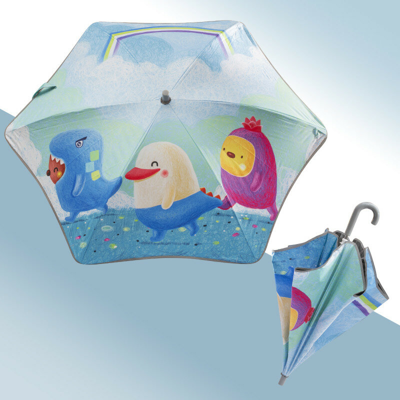 Зонт детский механический складной с рисунком Белоснежка "Веселые динозаврики", 6 спиц
