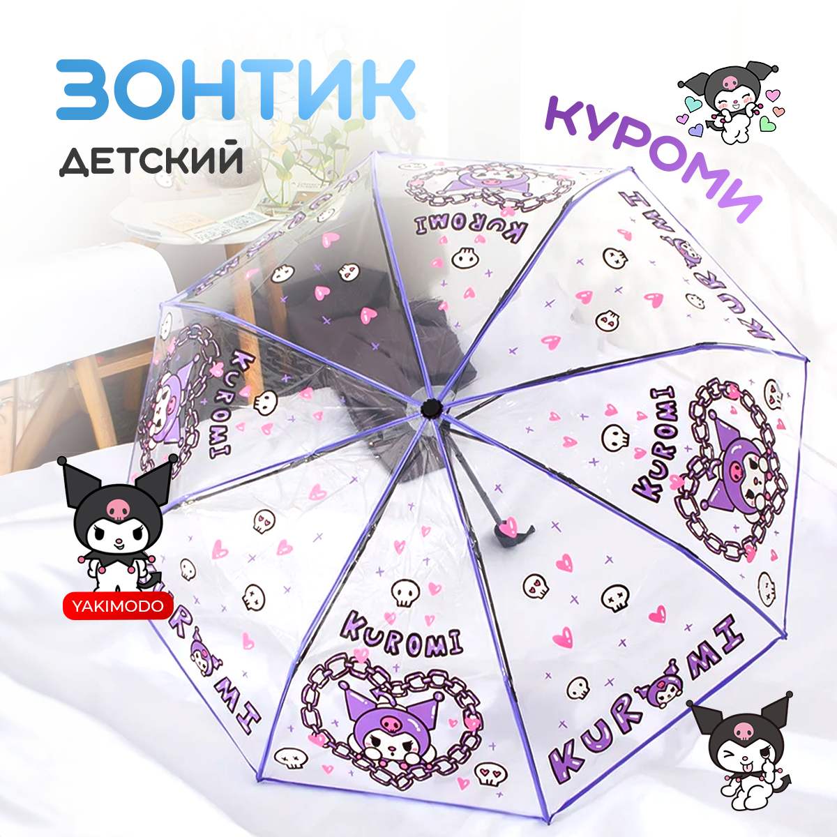 Прозрачный детский зонт для девочек с принтом Куроми, складной зонтик антиветер для подростка в стиле аниме интересное: