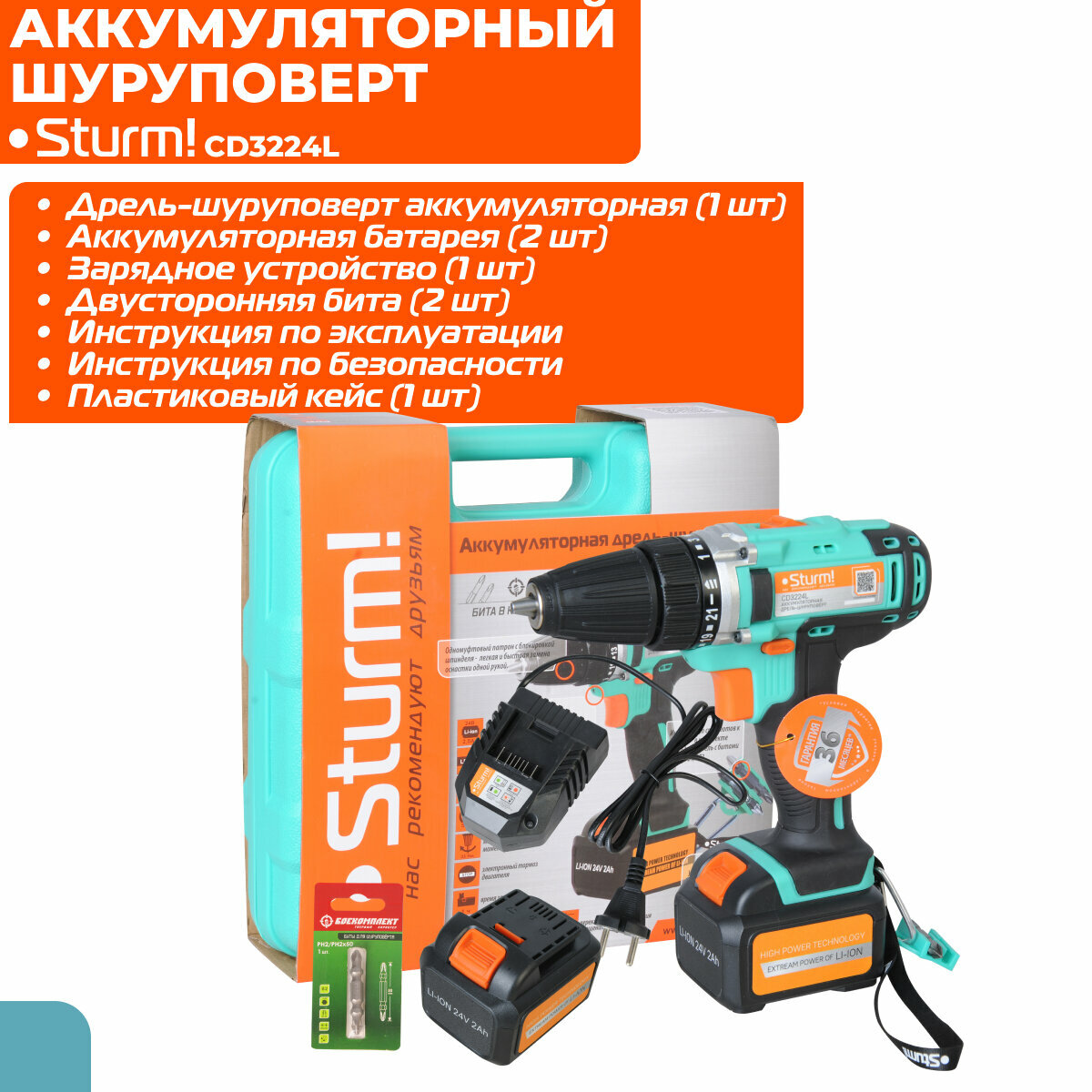 Дрель-шуруповерт Sturm! CD3224L аккум. патрон:быстрозажимной (кейс в комплекте)