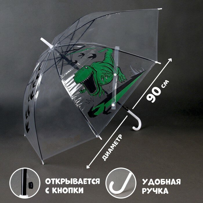 Купить Funny toys Зонт детский «Динозавр» полуавтомат, прозрачный, d=90см