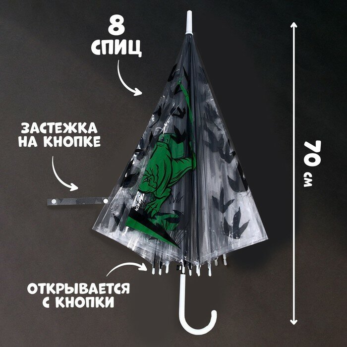 Funny toys Зонт детский «Динозавр» полуавтомат, прозрачный, d=90см интересное: