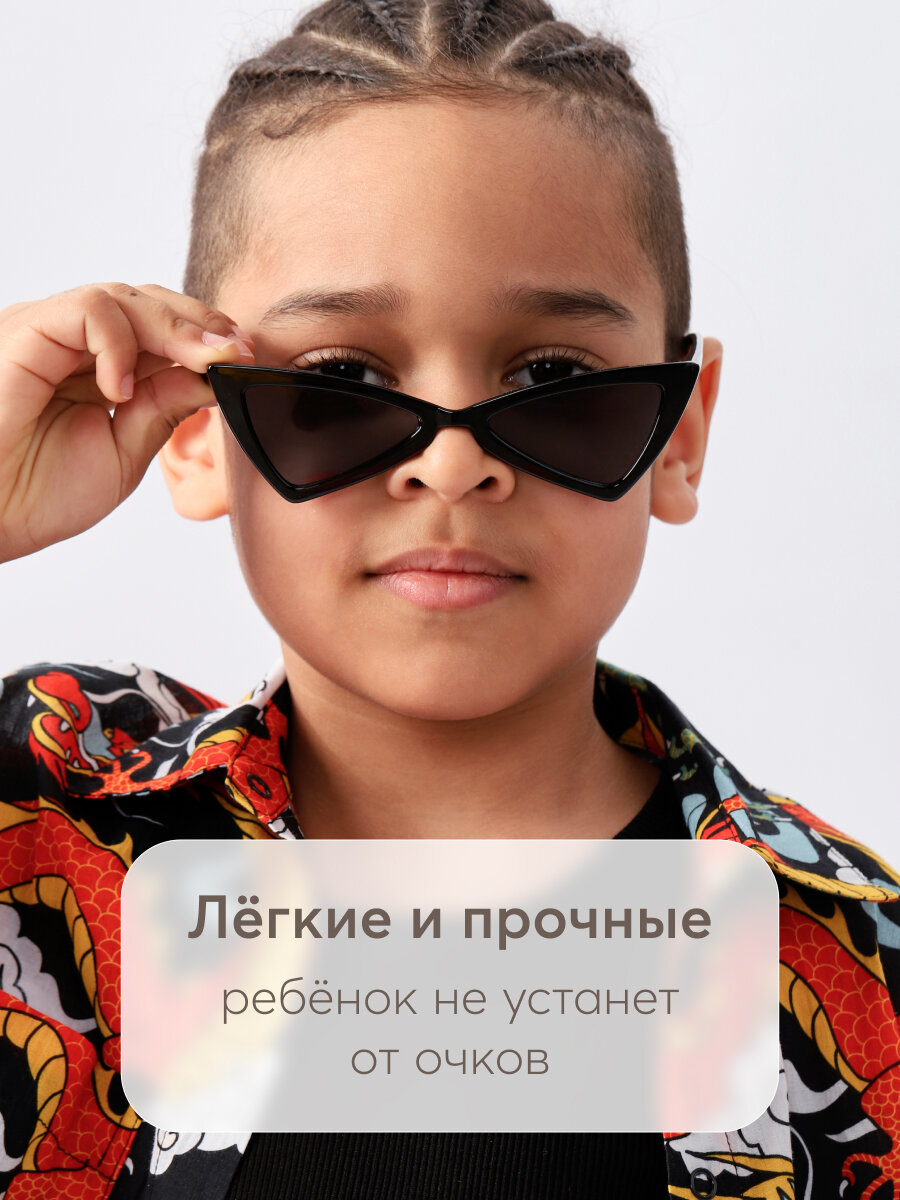 50673, Очки детские солнцезащитные UV400 Happy Baby, с защитой от ультрафиолетового излучения, треугольные, черные интересное: