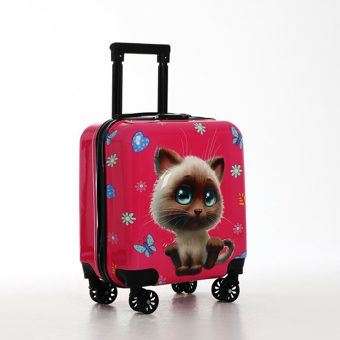 Купить Чемодан дет. Котик 20", 35х20х40, отд. на молнии, 4 колеса, розовый