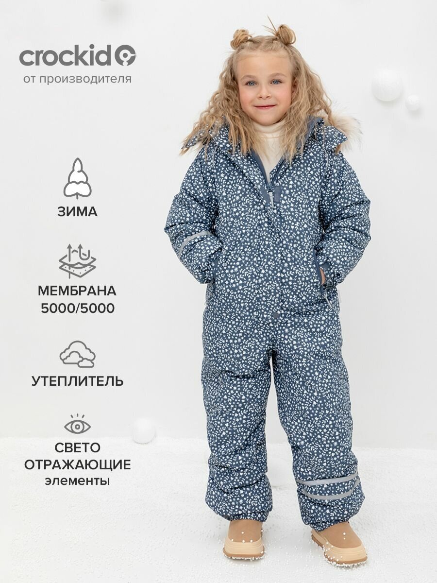 Купить Комбинезон зимний мембранный для девочки,Crockid,серый,98-104