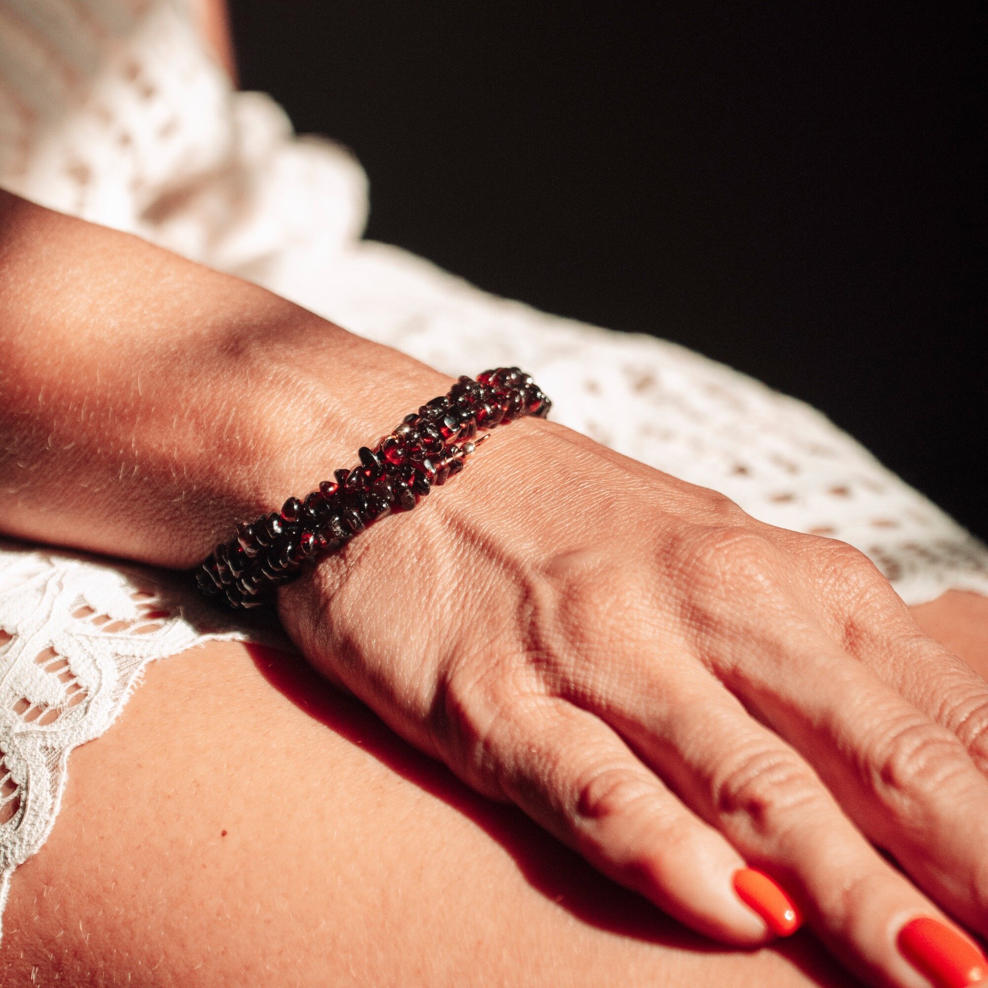 СохранитьБраслет гранатовый женский из натуральных камней на руку Freeform, размер 16-19, украшение из граната интересное: