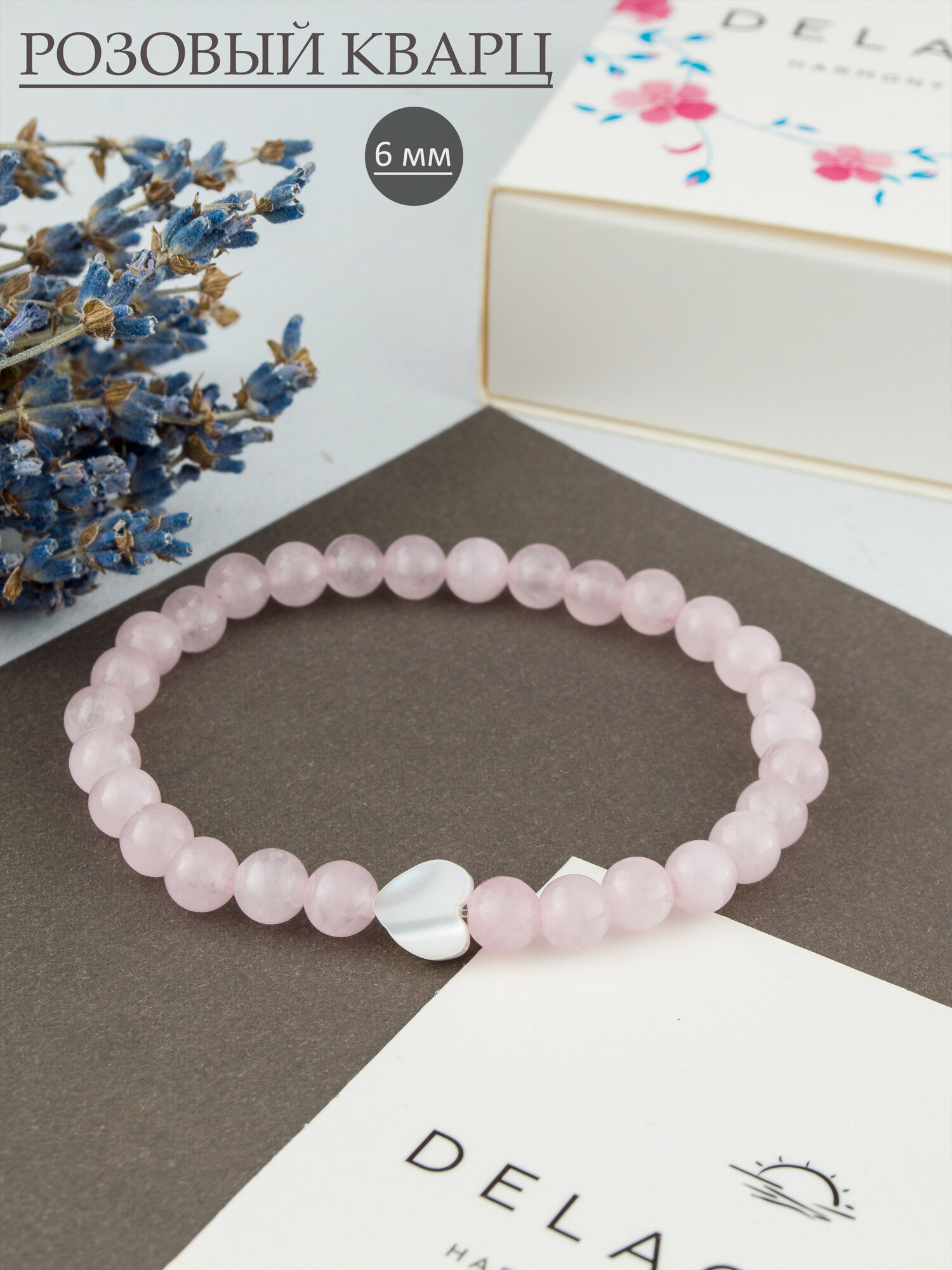 Купить Браслет розовый кварц с сердечком 6 мм. XS