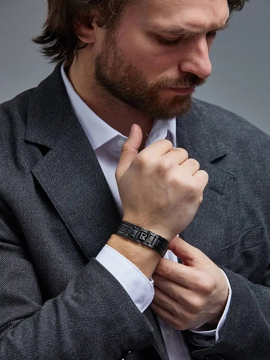 Широкий мужской магнитный браслет Альфа Black на руку от давления интересное: