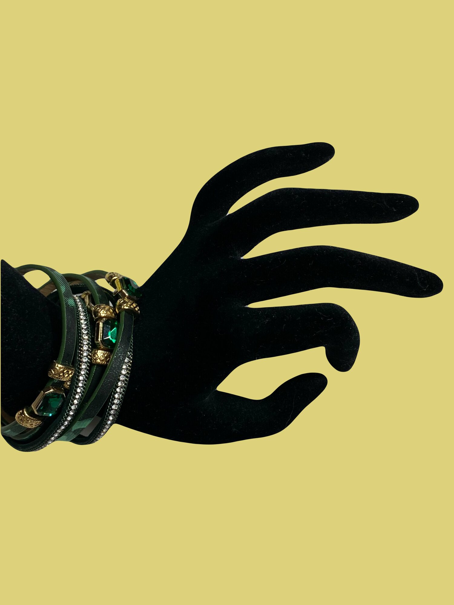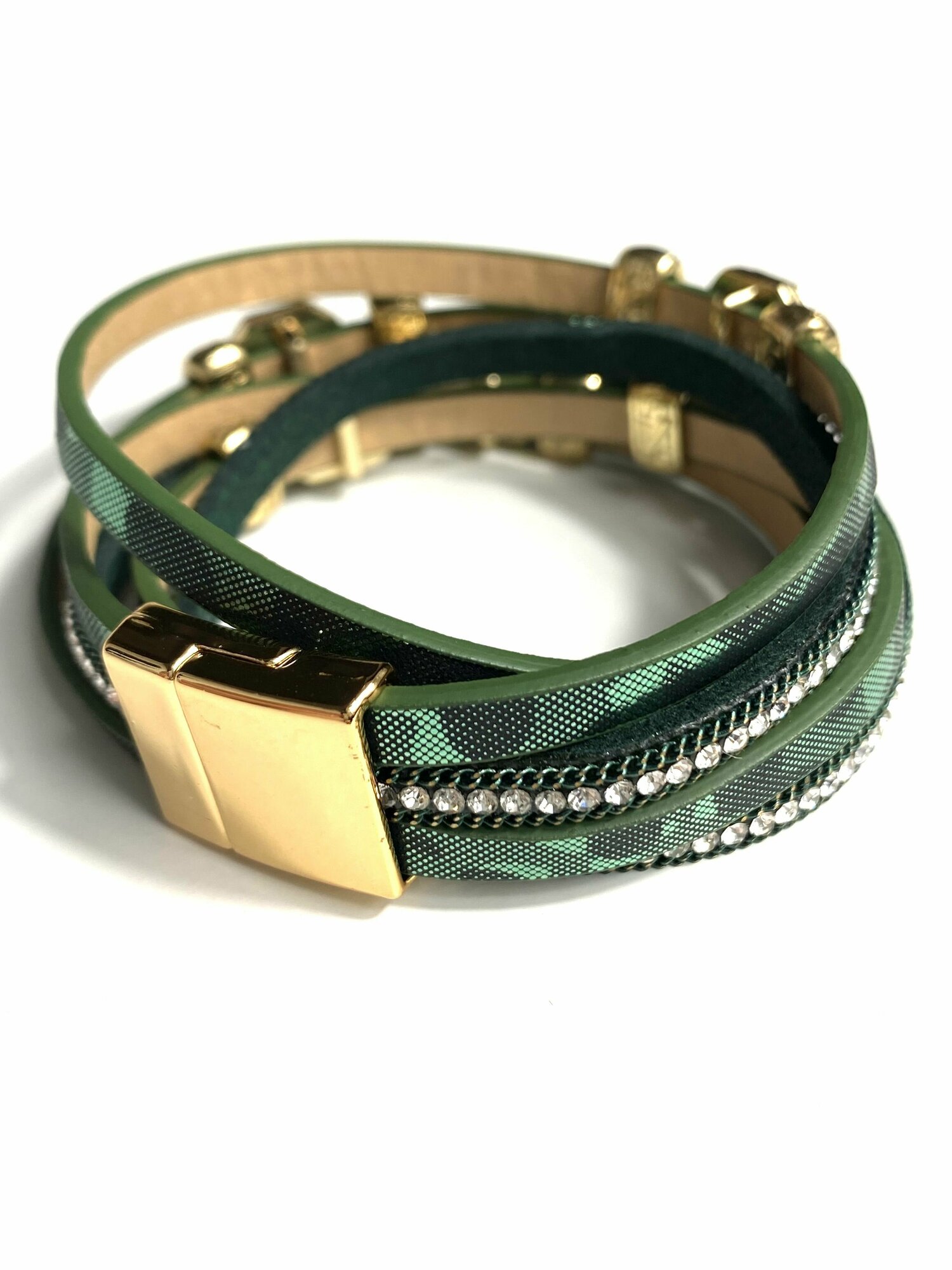 Купить Браслет из экокожи, зеленый с кристаллами