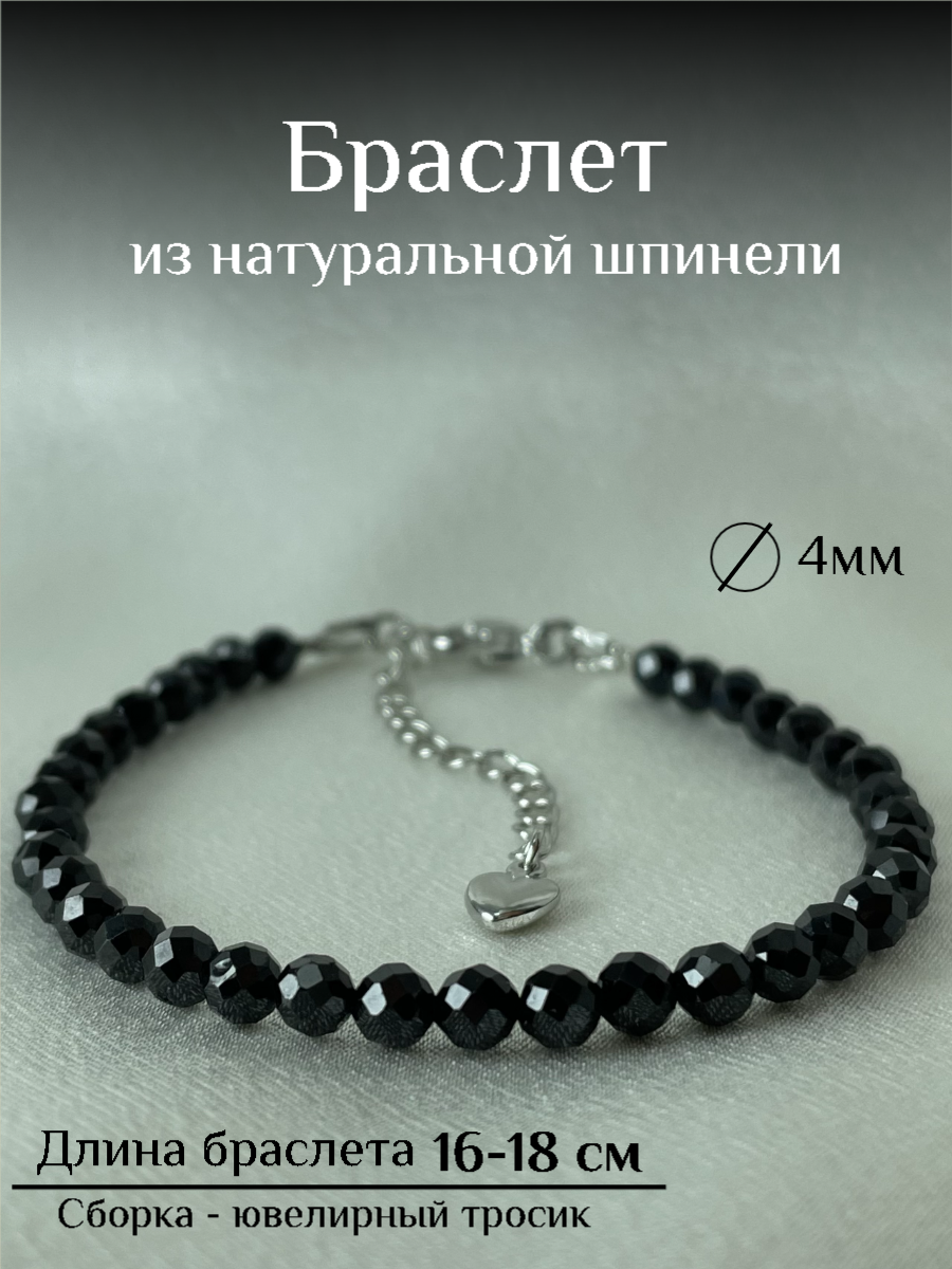 Браслет из натуральной Шпинели. "Шпинель с ювелирной огранкой", натуральный. В подарочной упаковке. Черный(17см) интересное:
