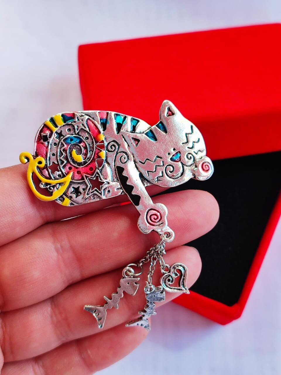 Брошь «Кот» сказочный, цветная в серебре интересное: